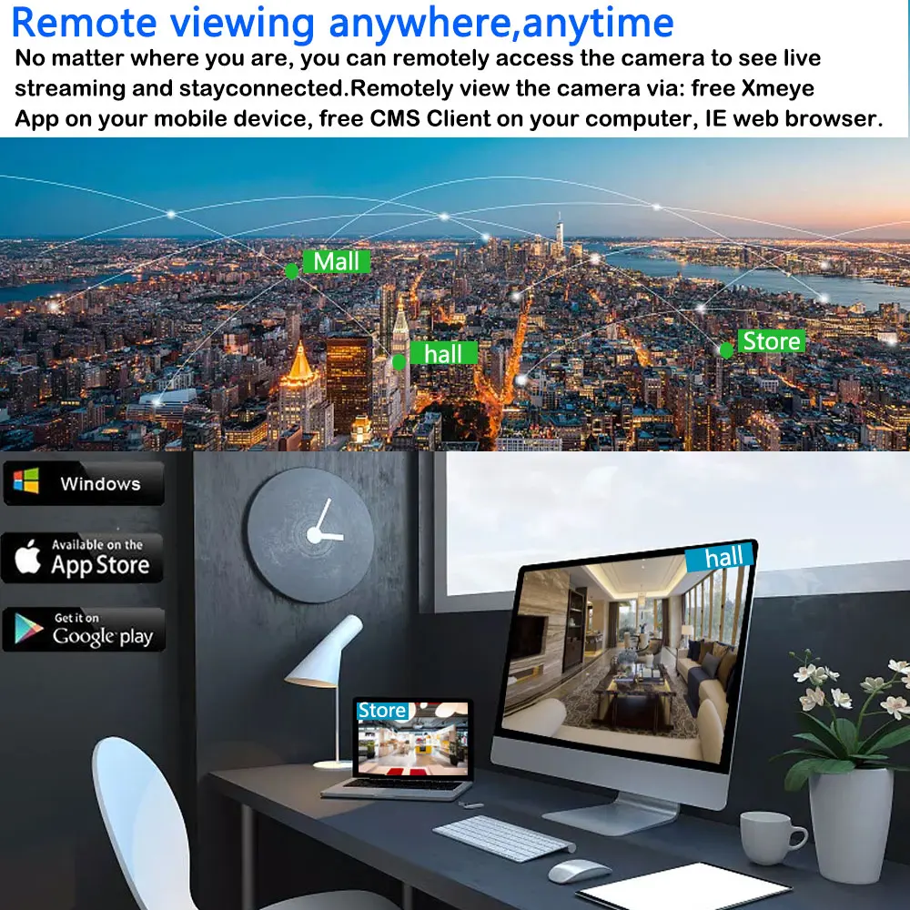 High-Definition interface output,Suport for online playback,Mobile remote,Multi-window display with 8.0MP Resolution.The angle will be more larger,and the image will be more clearer.