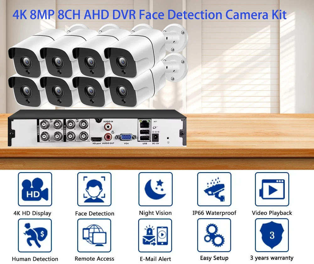 8MP 8CH H.265+ Night Vision Surveillance System P2P 4K DVR Outdoor IP66 Waterproof Home CCTV 4K Video Camera Security System Kit