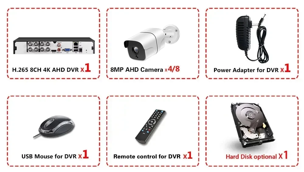 2/4/6/8 x HD 8.0MP indoor outdoor IR Day Night vision weatherproof cameras;