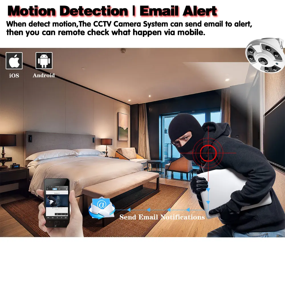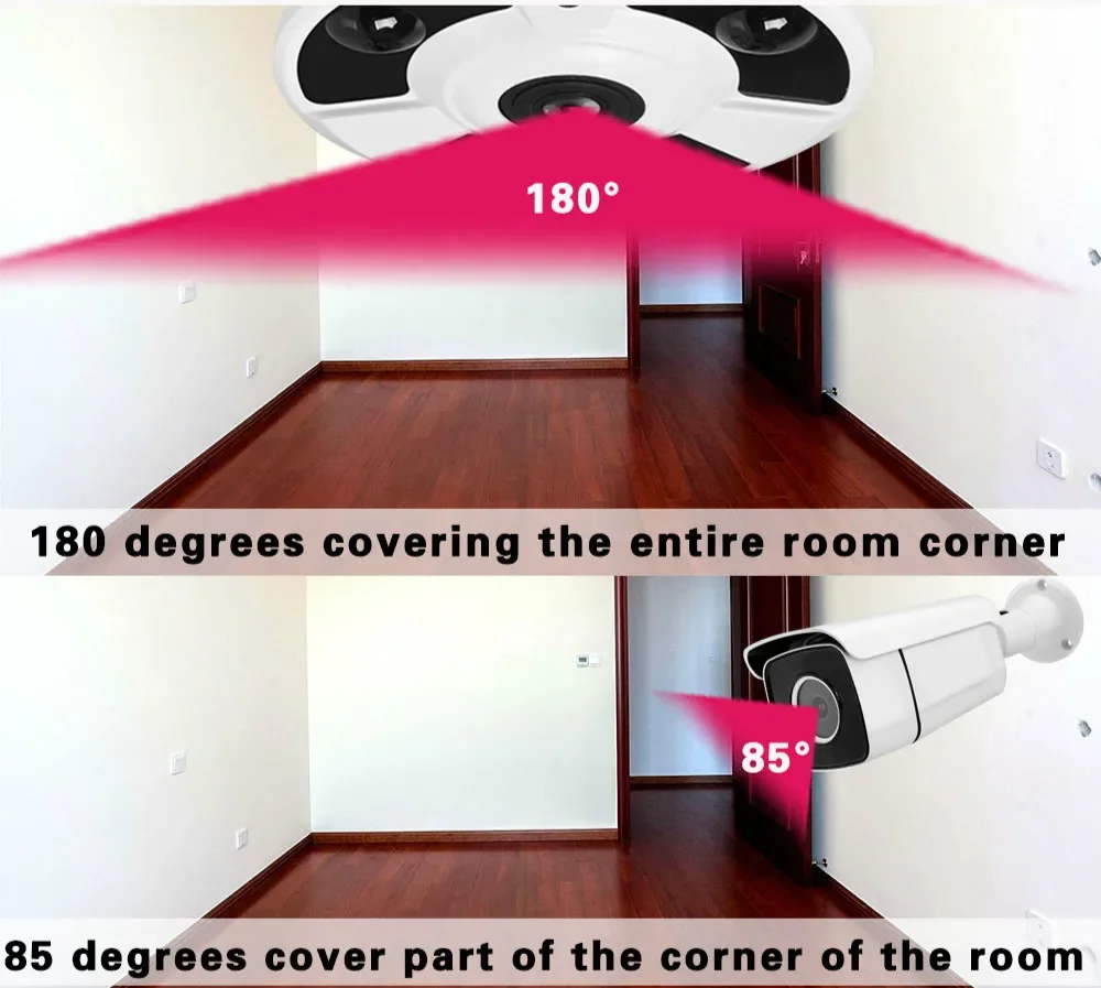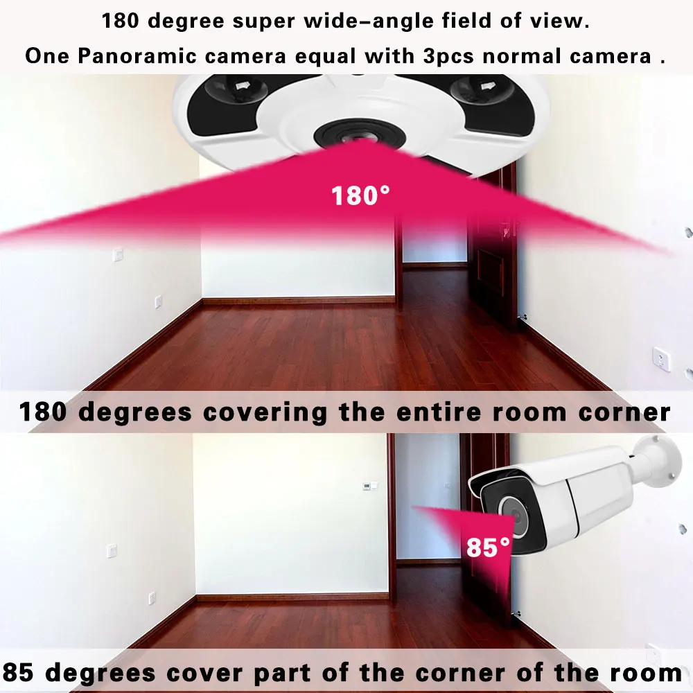 With 8MP 1.7mm fisheye lens,up to 180degree wide angle.One Panoramic camera equal with 3pcs normal camera .