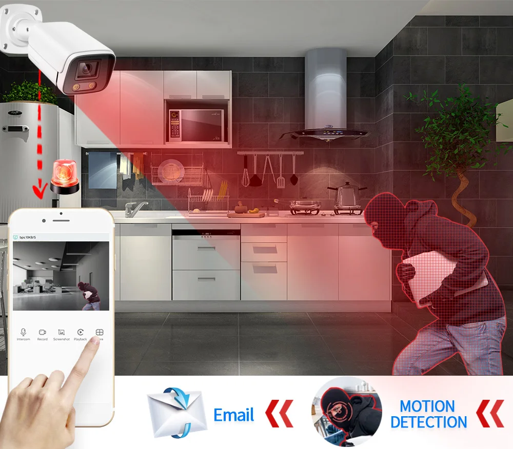 8.Support Motion Detection, Email Alerts, Video Playback;