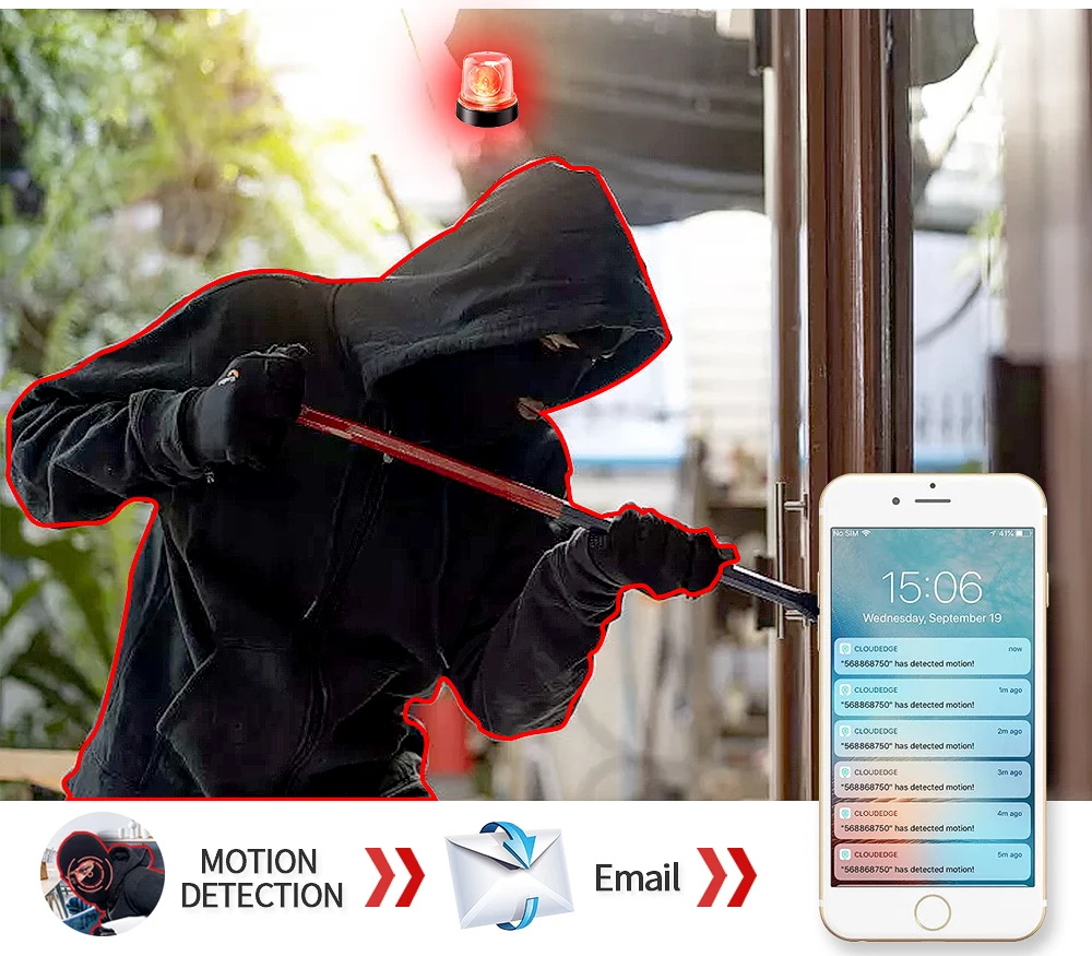 Can set up the area you want to control,When it is triggered,it will send message to your email ,You can get the first hand information ,no matter when and where you are .