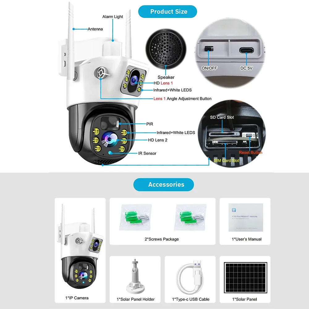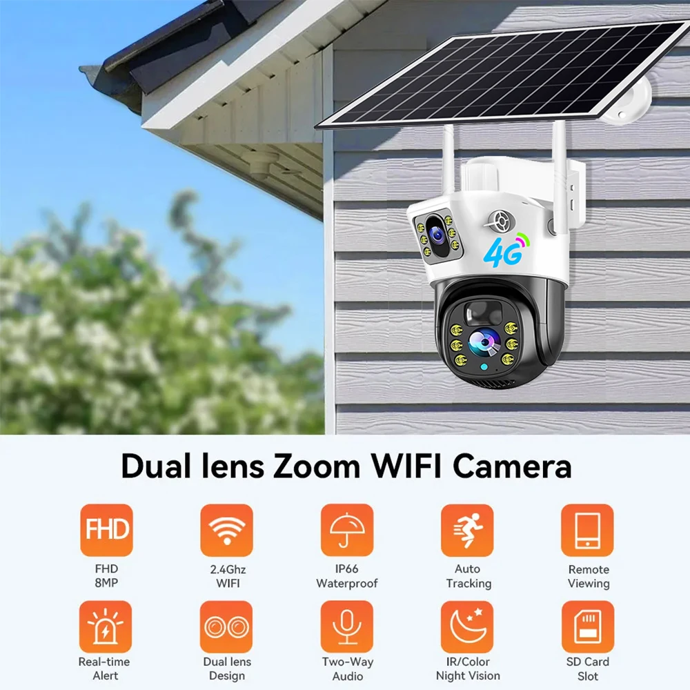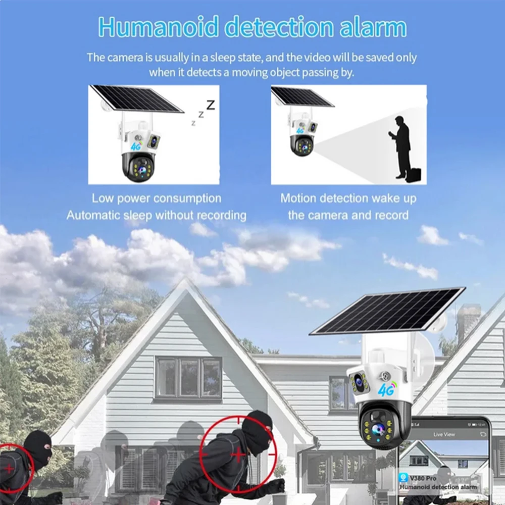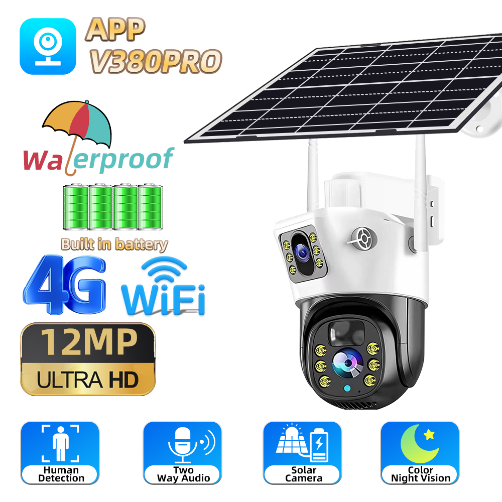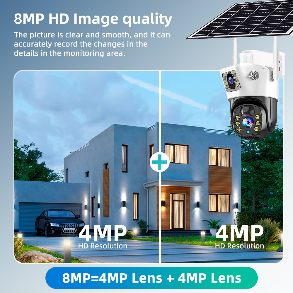8MP Solar 4G SIM Card Wifi Outdoor IP Security CCTV HD Surveillance PTZ Camera Night Vision PIR Human Detection V380 PRO