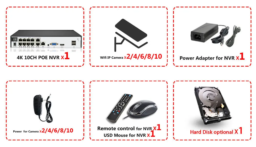 2/4/6/8/10 x HD 4k Wifi IP Camera indoor outdoor