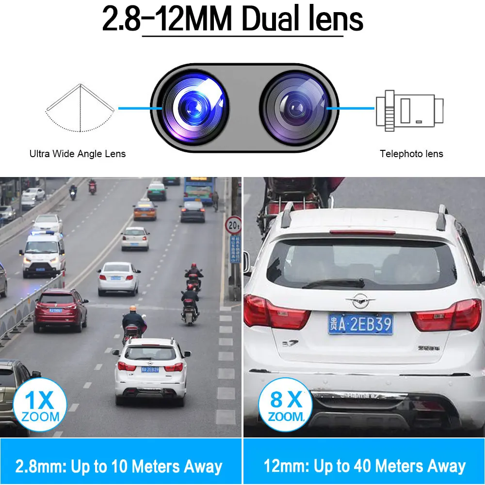 You can use an upgraded version dual-lens IP camera, which can achieve the effect of 8x digital zoom and can see long distances up to 40m.