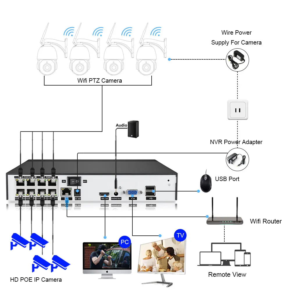 The cctv camera security system is plug and play ,easy to set up,Making lift more easier.Remote viewing anywhere anytime.