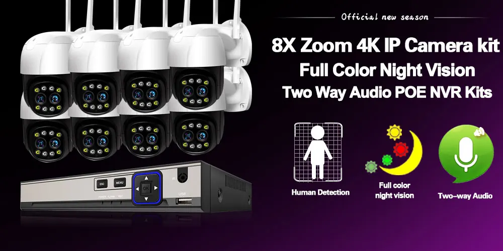 Built in 4pcs Array IR leds +4pcs white light leds,support color night vision and normal infrared night vision multiple night vision mode