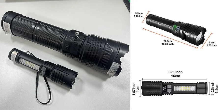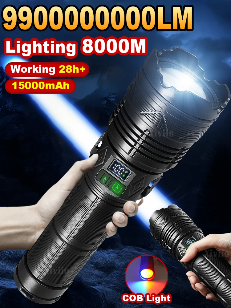 The latest ultra-high brightness 1500W flashlight丨6 main light modes + 5 tail light COB modes