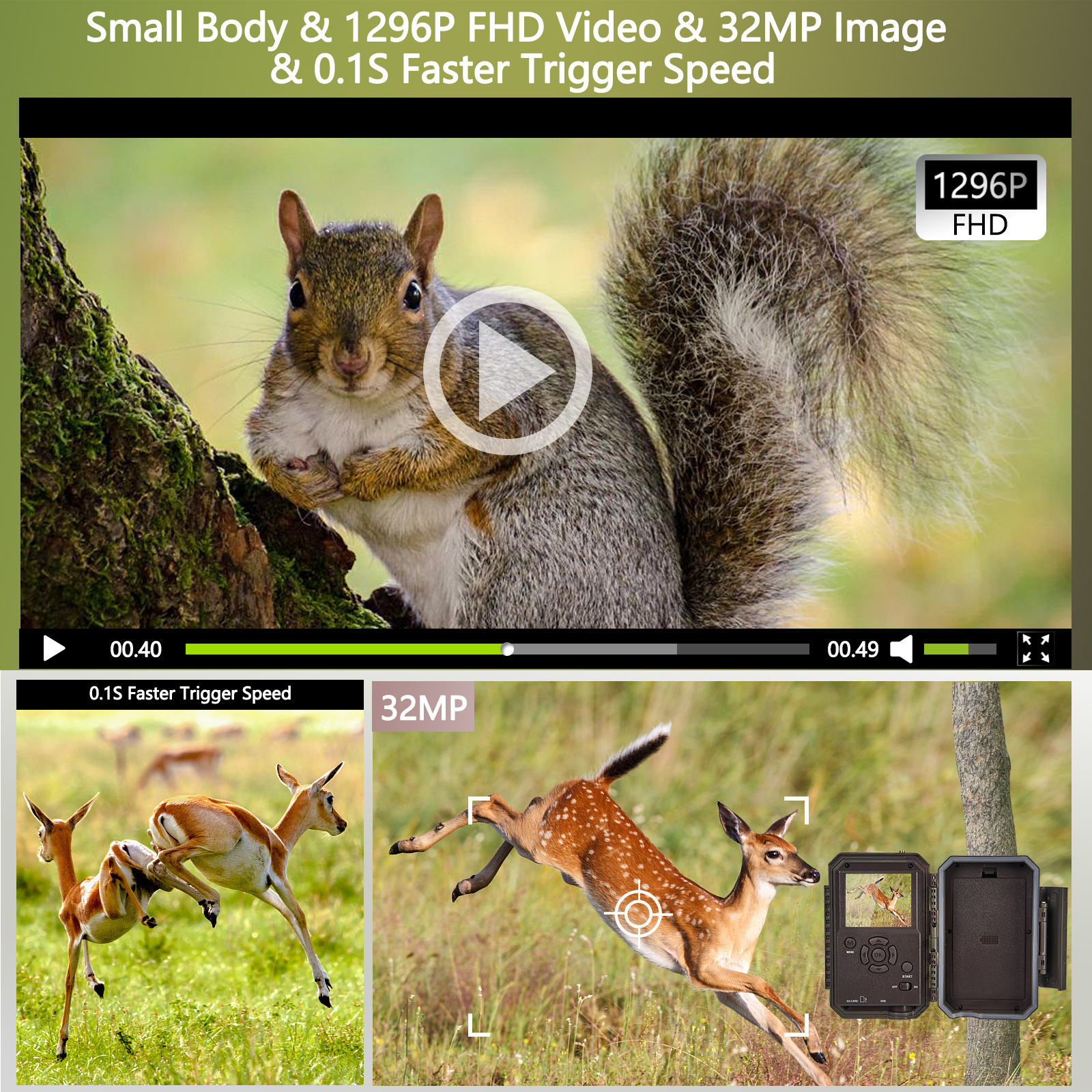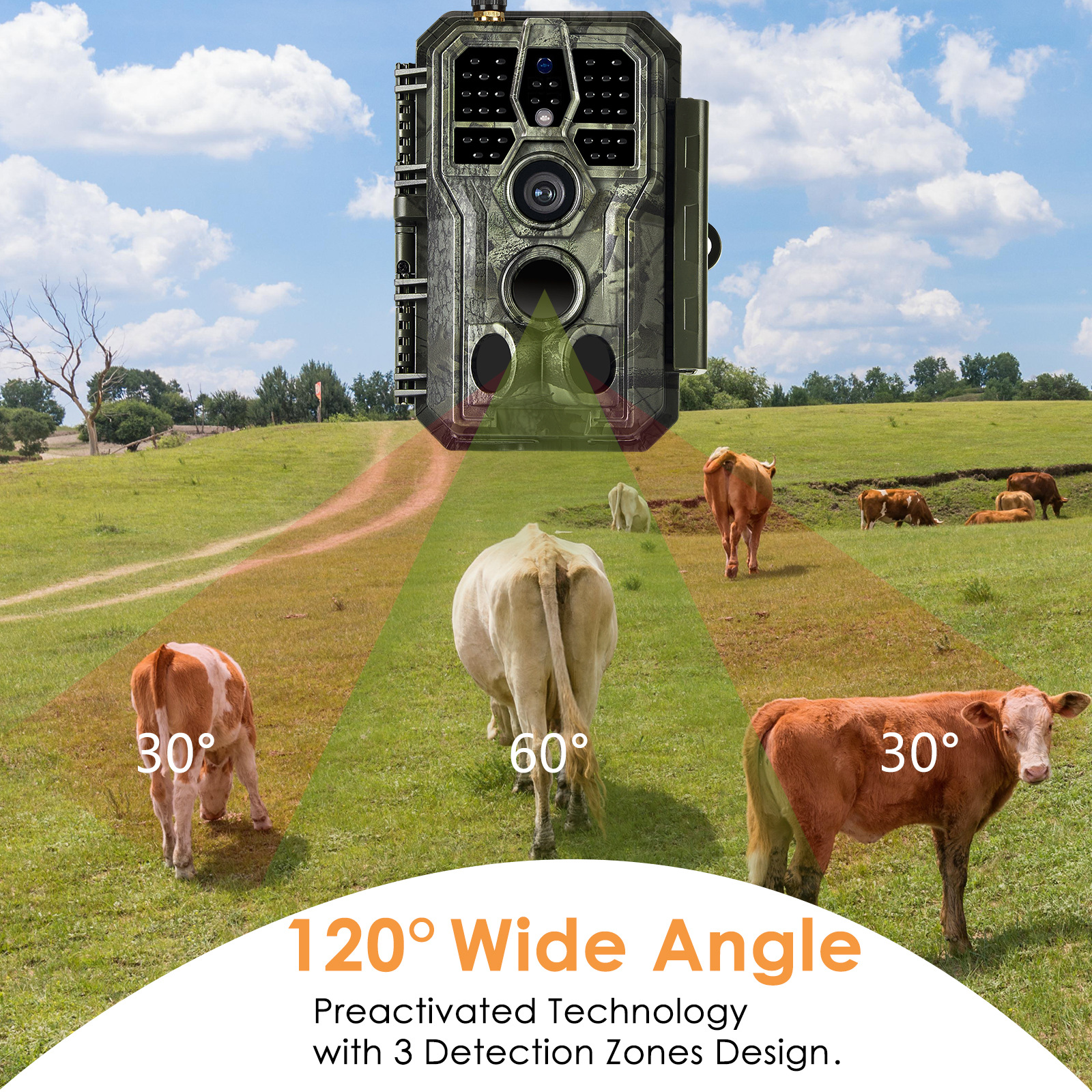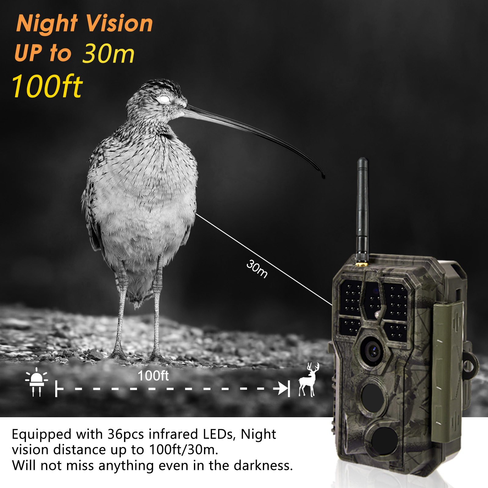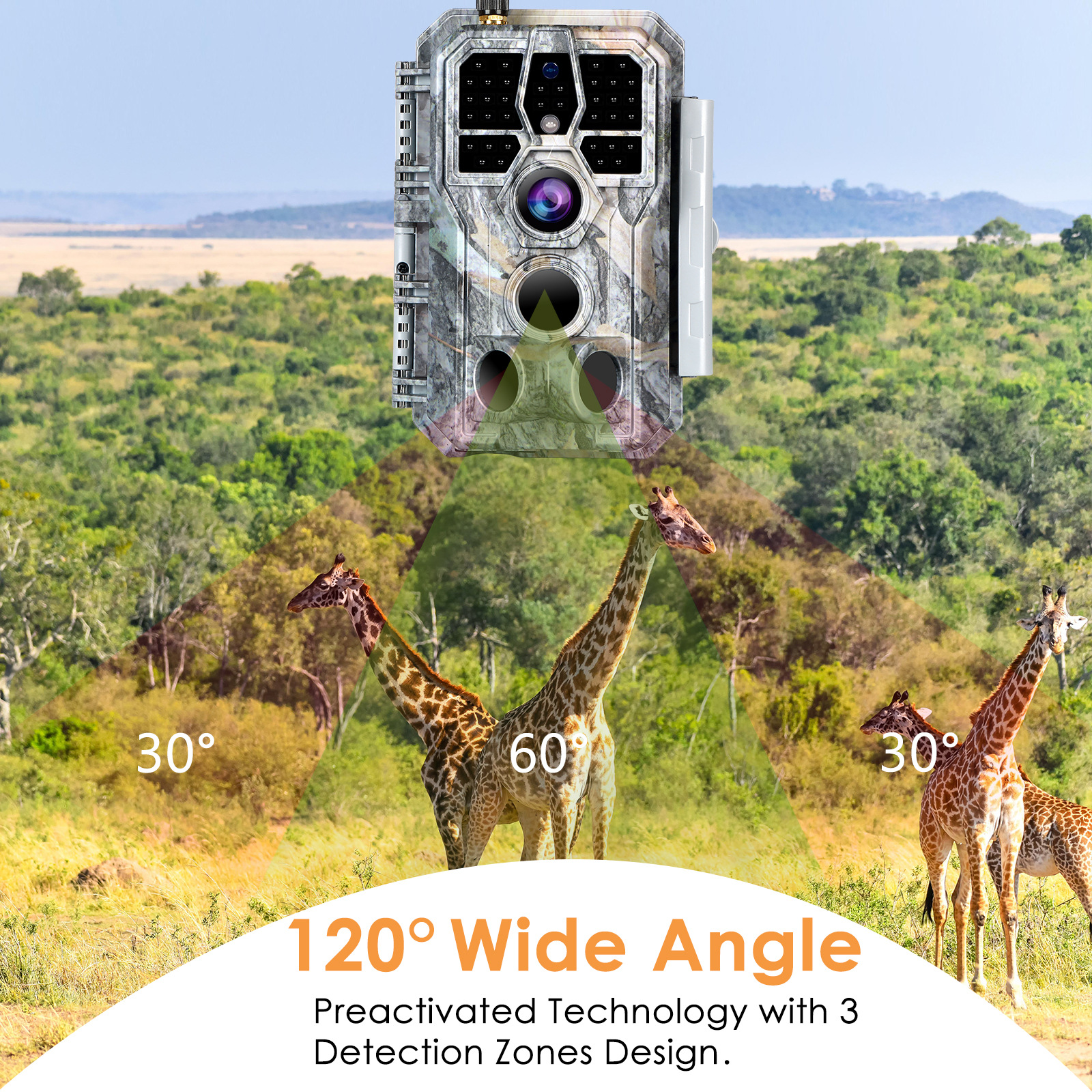 A280W 64MP WIFI Wildlife Game Trail Camera Photo Traps wtih No Glow LEDs 120 Degree Wide Detection Angle, App Settings