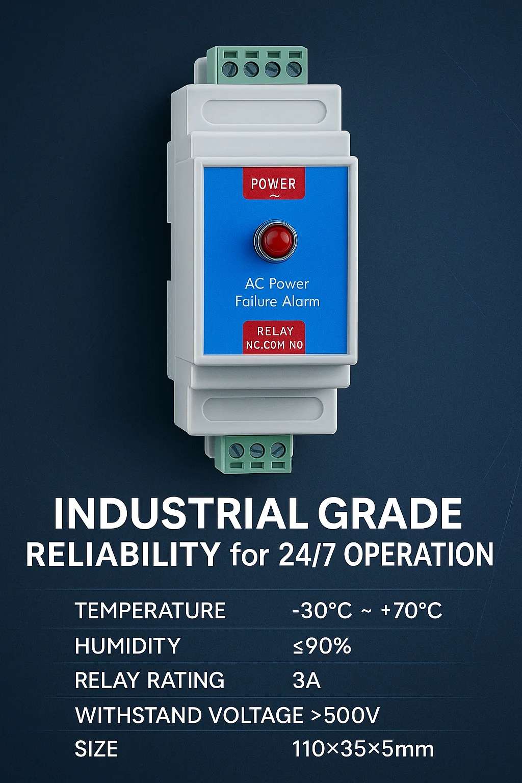 Standard 35mm rail mounting structure—ideal for industrial cabinets, distribution boxes, pump rooms, and network environments.