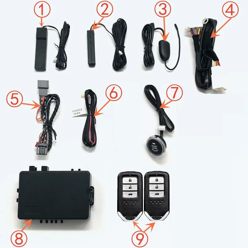 Product List:①Low Frequency Antenna  ②Low Frequency Antenna  ③High Frequency Antenna  ④Starter plug  ⑤CAN plug  ⑥16Pplug  ⑦Start button  ⑧Mainframe  ⑨Smart Key