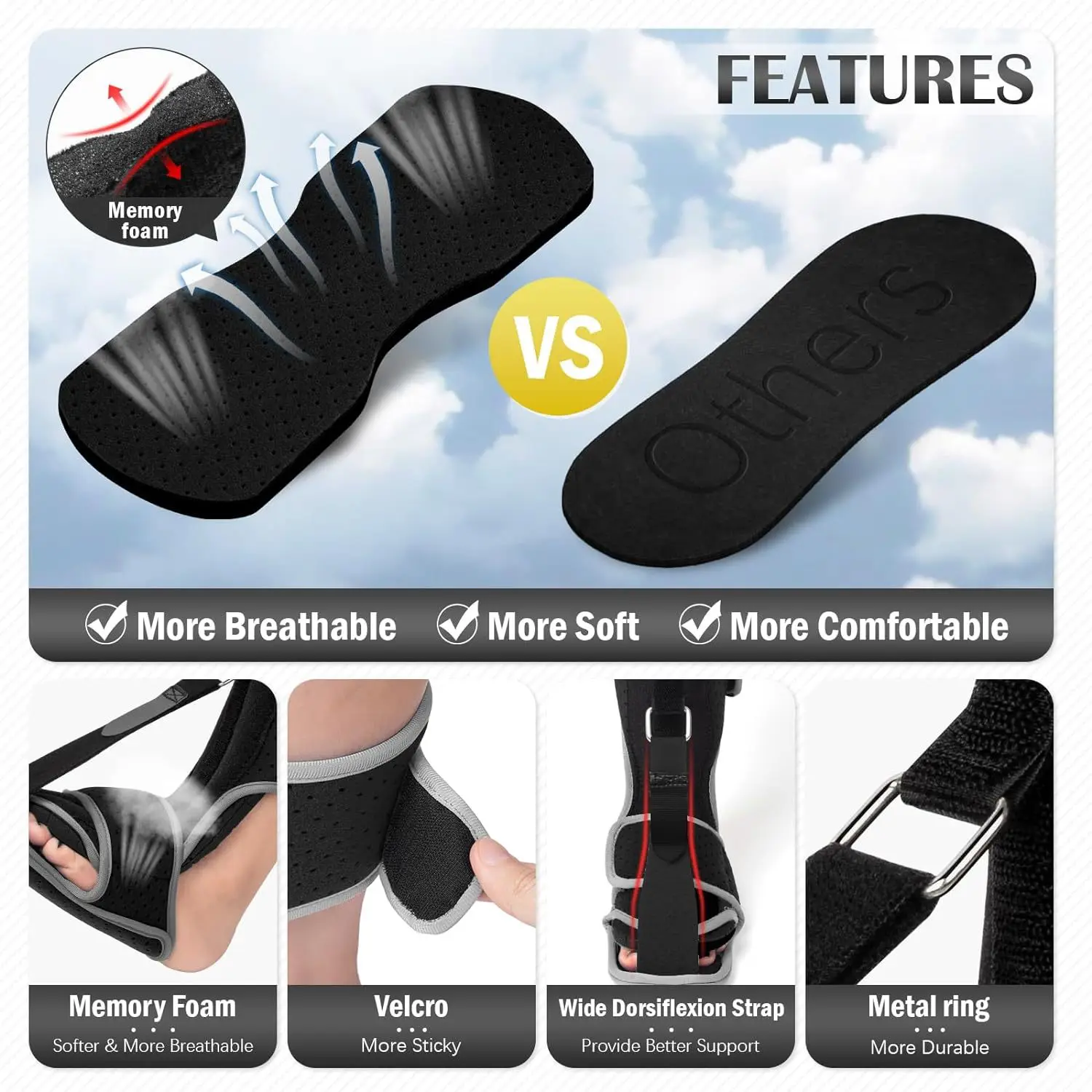 Adjustable Night Splint For Plantar Fasciitis Pain Relief Soft Foot Drop Brace Sleeping Achilles Tendon Stretcher Boot Nighttime