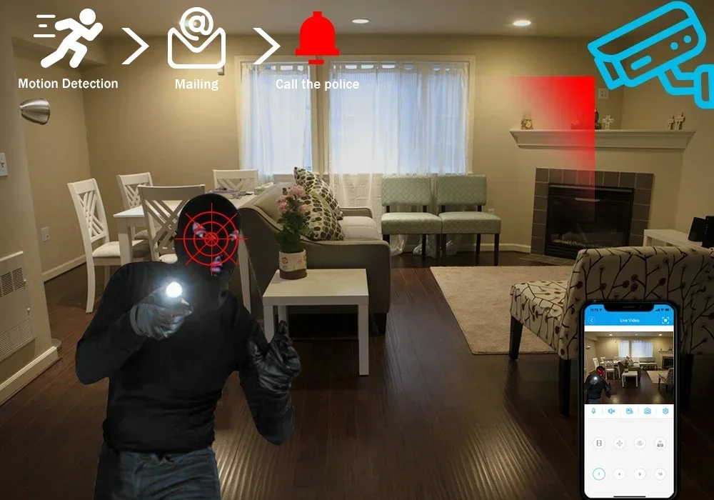 Can set up the area you want to control,When it is triggered,it will send message to your email ,You can get the first hand information ,no matter when and where you are .