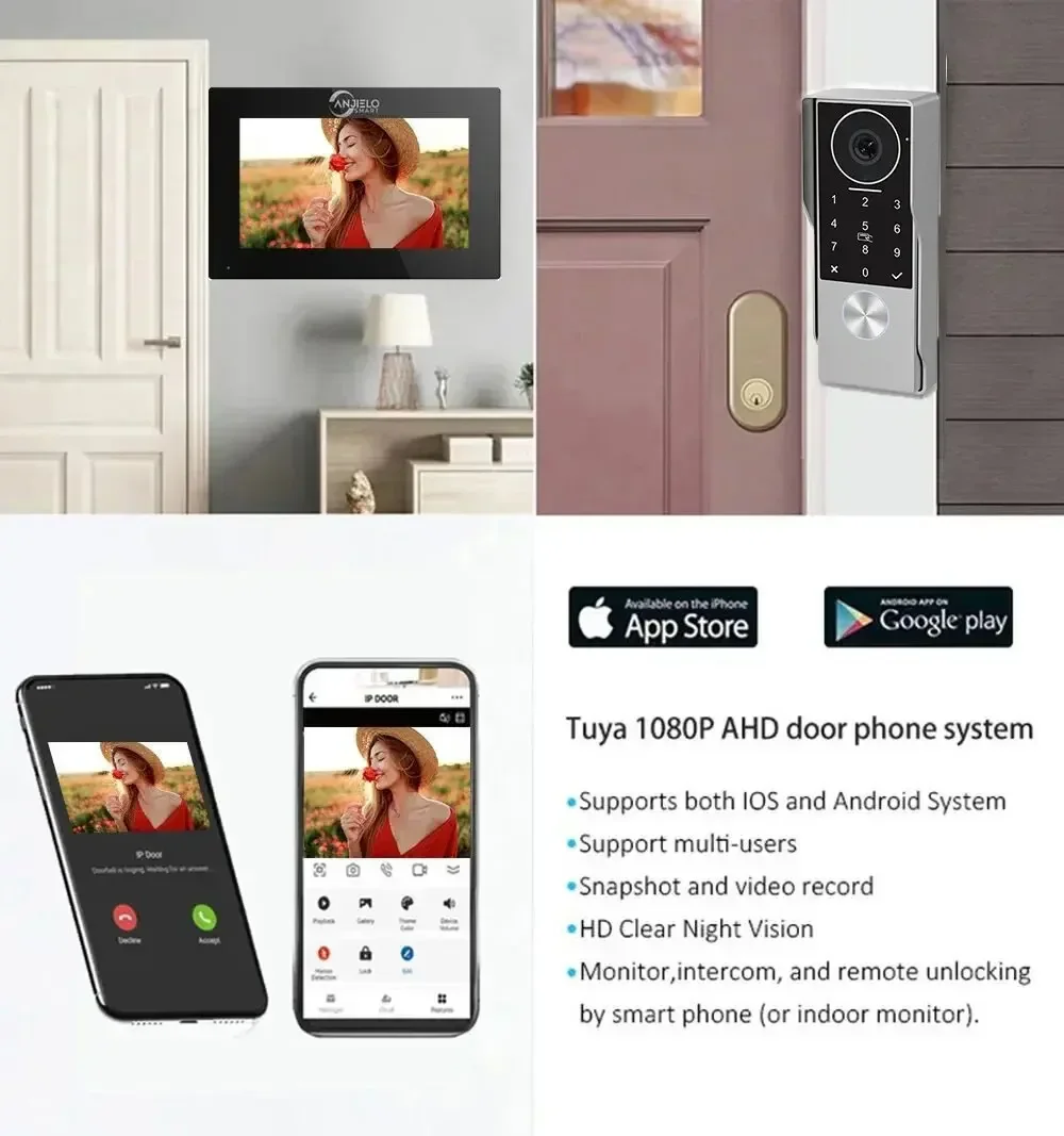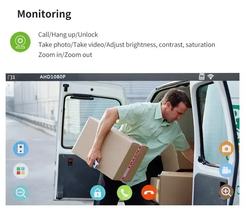 – 20 App users connect to the APP, users can talk to visitors anytime and anywhere, take photo or video, monitor, unlock lock and gate, cloud storage