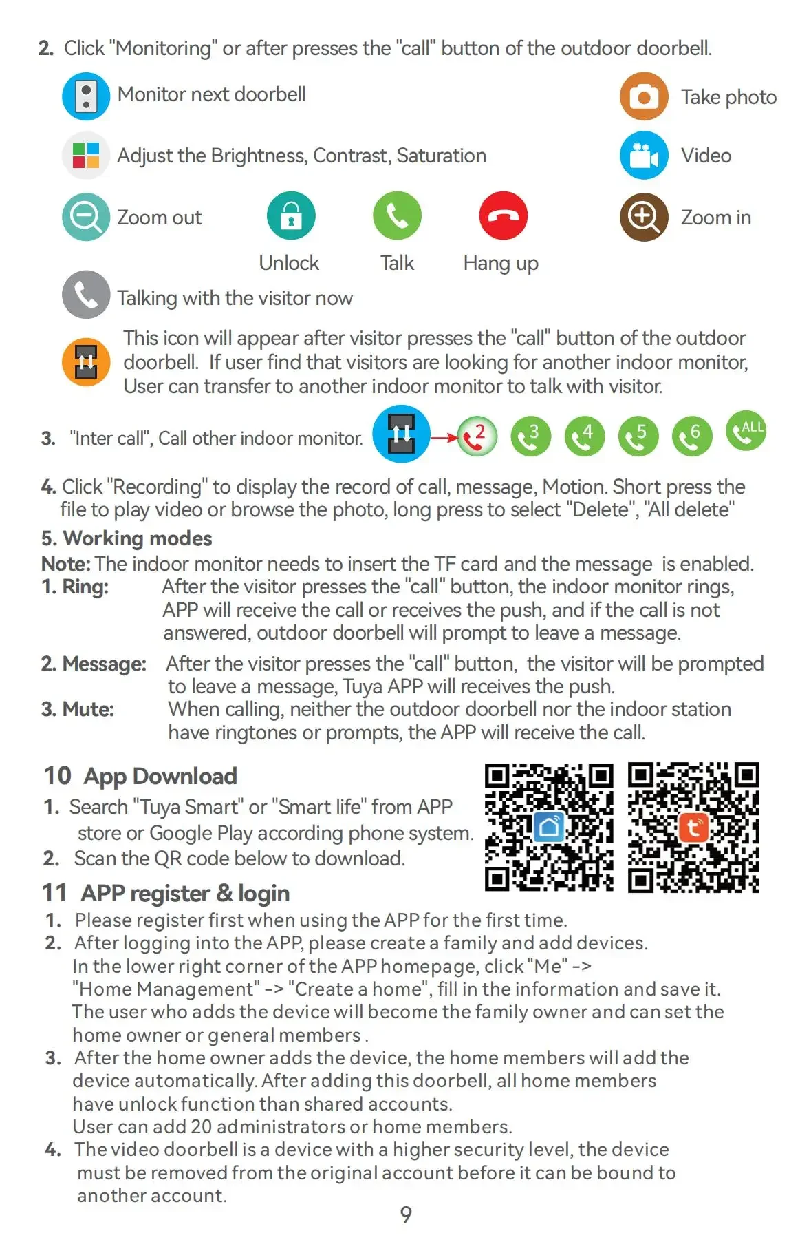 ANJIELO video intercom system 7-inch monitor 1080P Tuya multi-household intelligent video intercom metal doorbell protection