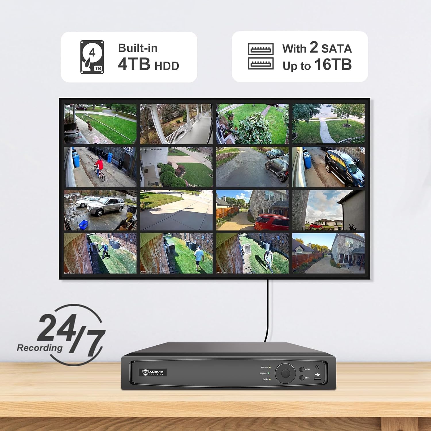 Human and Vehicle Detection: Anpviz 32ch nvr security camera system comes equipped with human and vehicle detection capabilities. When movement of human or vehicles is detected, it will promptly send alert emails and push notifications to your devices, effectively guarding against unforeseen risks. Note: After connecting the camera to the NVR, you’ll need to manually enable the person and vehicle detection function in the menu; a maximum of 4 channels can be used for this feature.