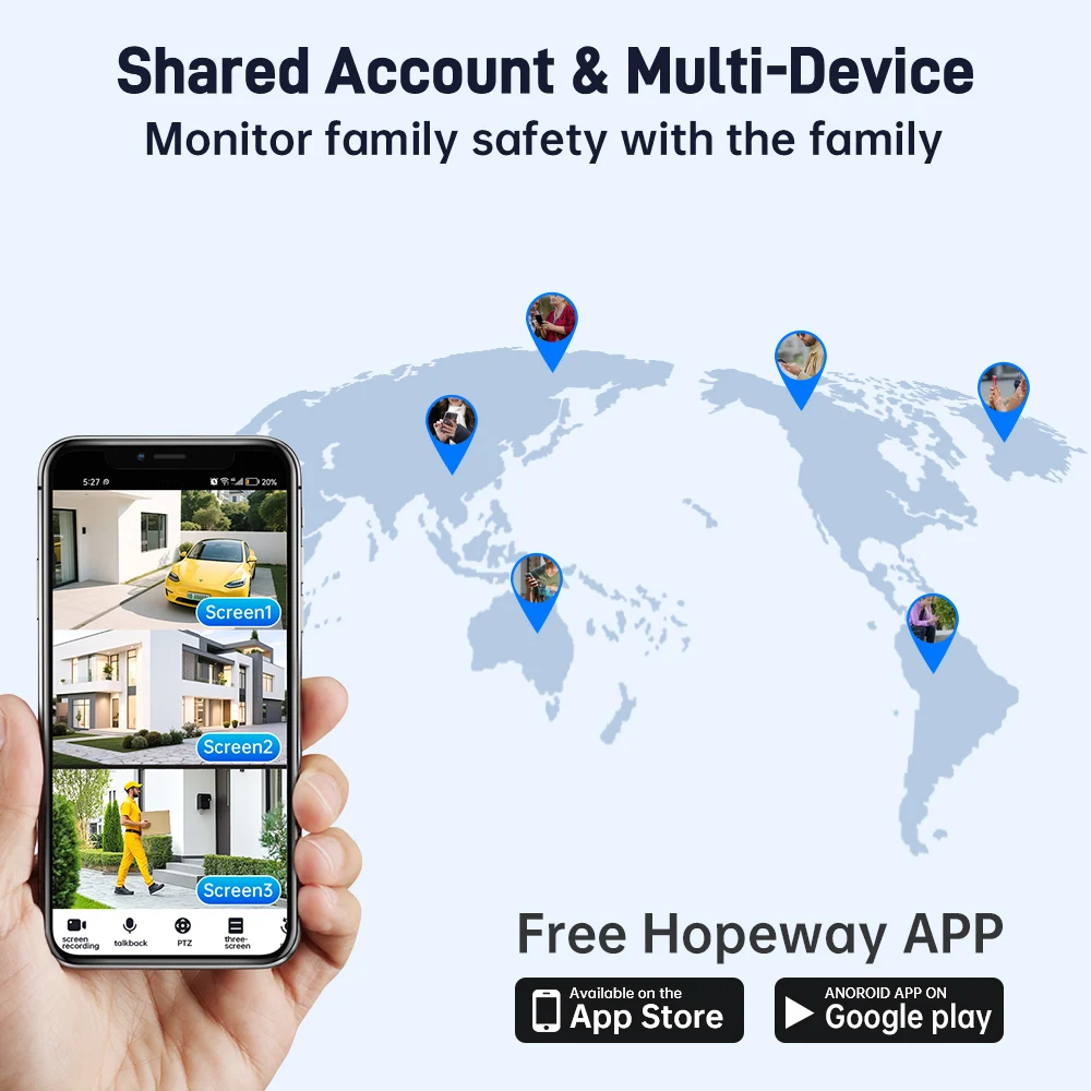 AOV Solar Camera 8K 15MP 4G Sim Card Solar CCTV Triple Screen AI Tracking New 6 Motors 3 PTZ Screen 360° Wireless Solar IP Cam