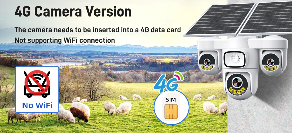 ●The 4G Version camera supports 4G sim card connection(doesn’t support 2.4Ghz and 5Ghz WIFI ) !
