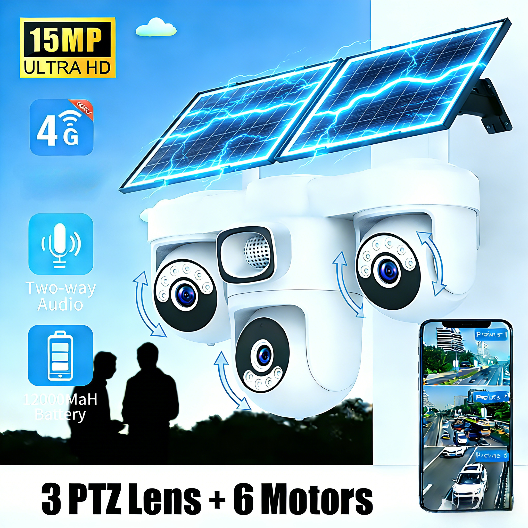 8K 15MP 4G Solar Camera wIreless Three Lens Three Screen CCTV Security Protection PIR Solar Cam External WiFi IP Camera Outdoor