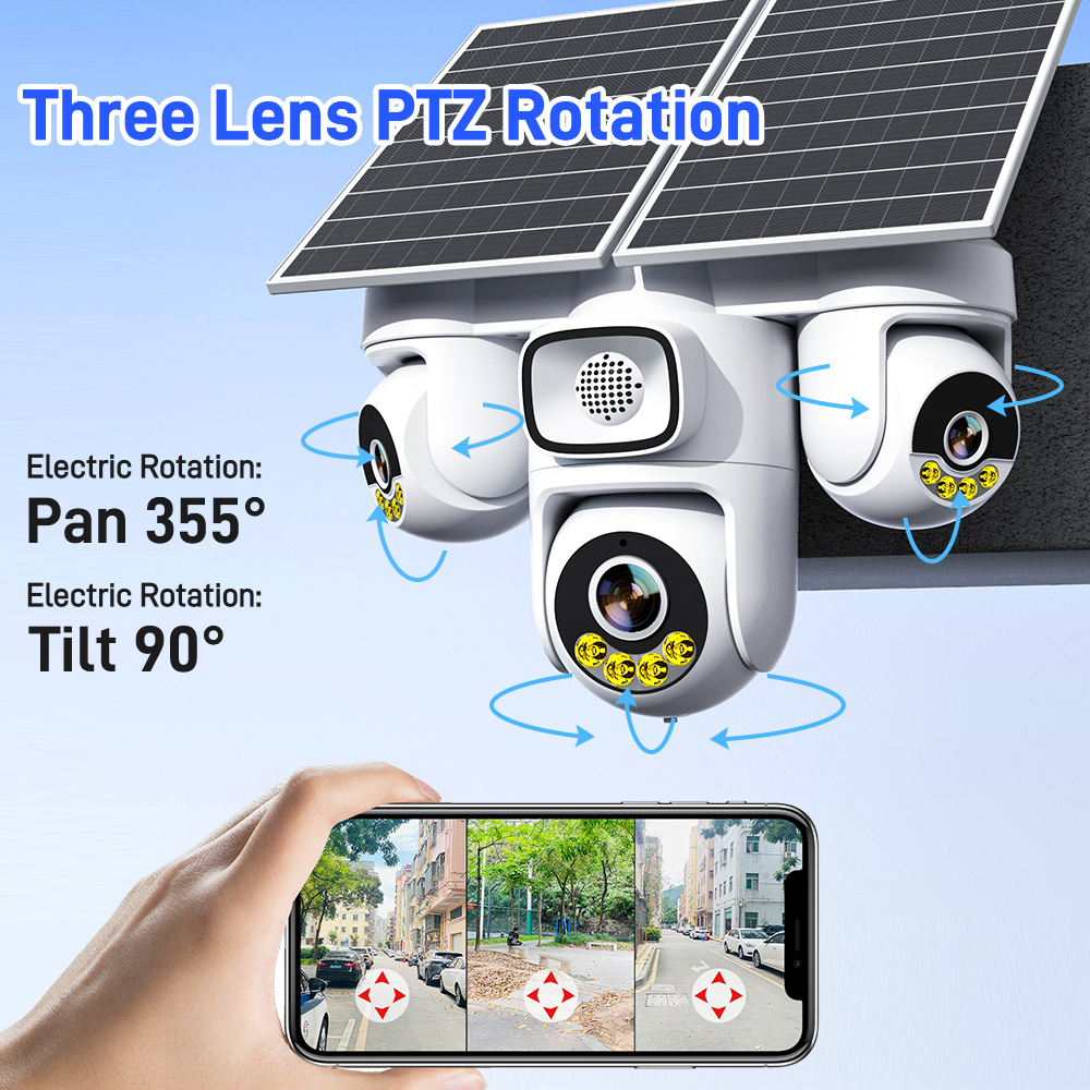 Solar Camera Triple Lens 16X Zoom Camera Outdoor Triple Screen Auto Tracking Smart Home Wireless CCTV Cam Waterproof