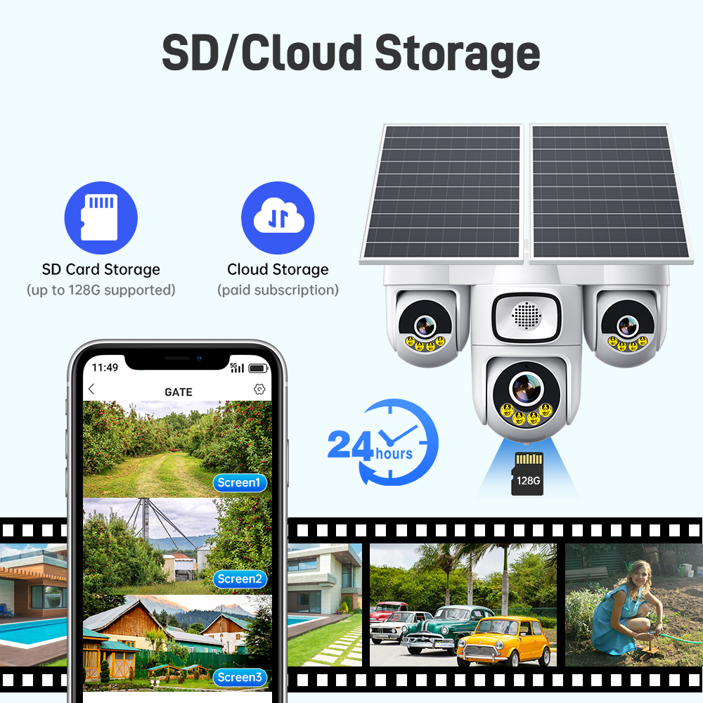 Three Lens 4G Camera Solar Outdoor Human Detection Night Vision Waterproof Security Video Battery Camara