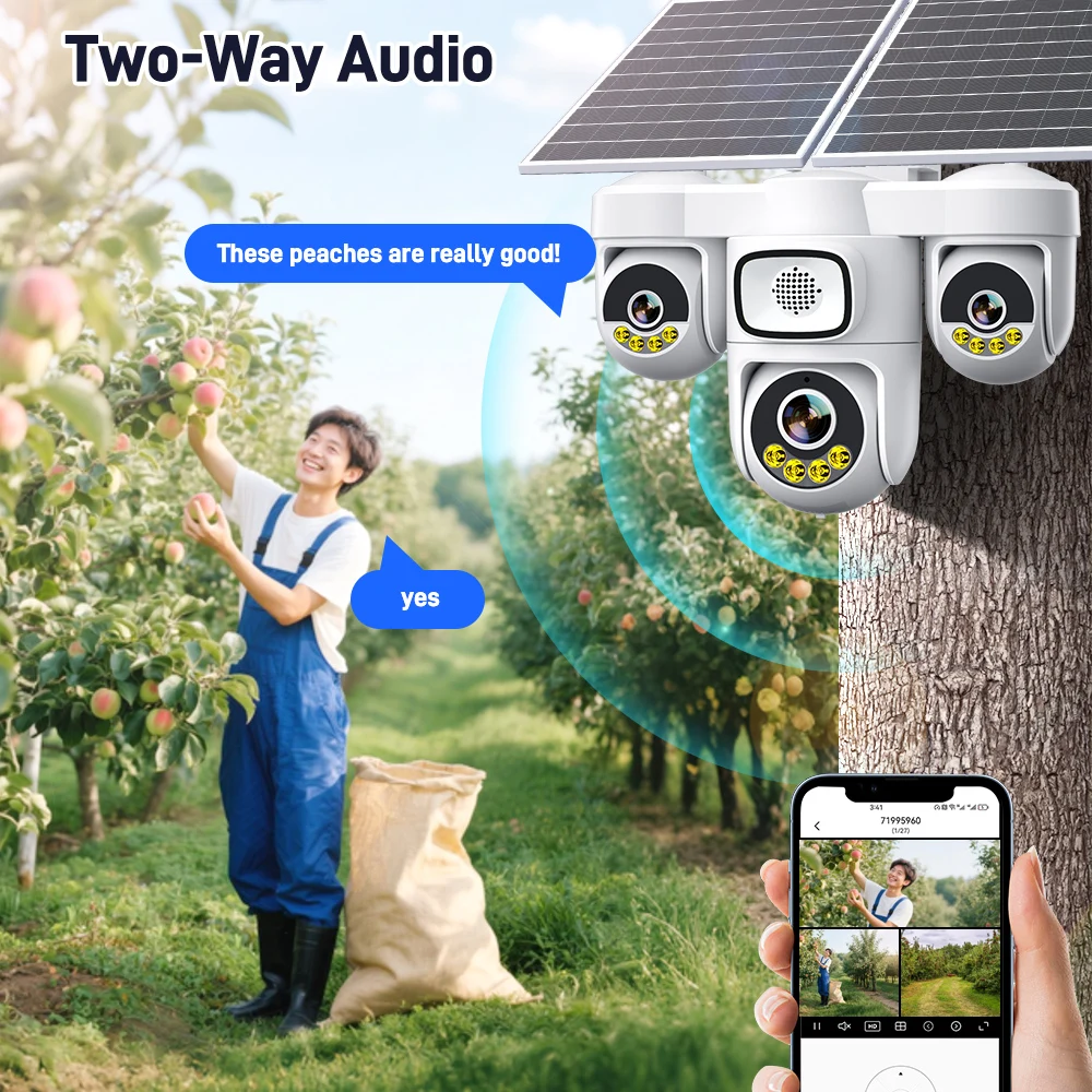 8K 15MP 4G Solar Camera wIreless Three Lens Three Screen CCTV Security Protection PIR Solar Cam External WiFi IP Camera Outdoor