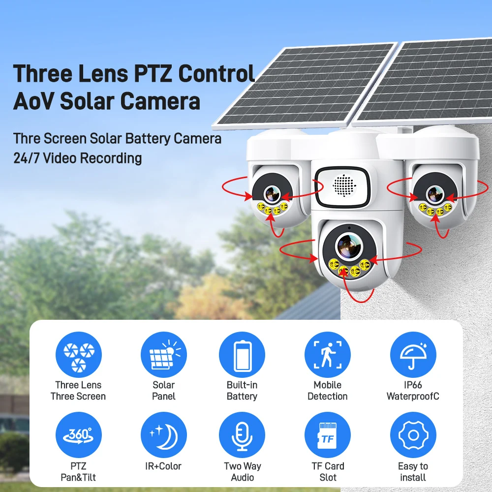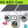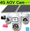 AOV Solar Camera 8K 15MP 4G Sim Card Solar CCTV Triple Screen AI Tracking New 6 Motors 3 PTZ Screen 360° Wireless Solar IP Cam