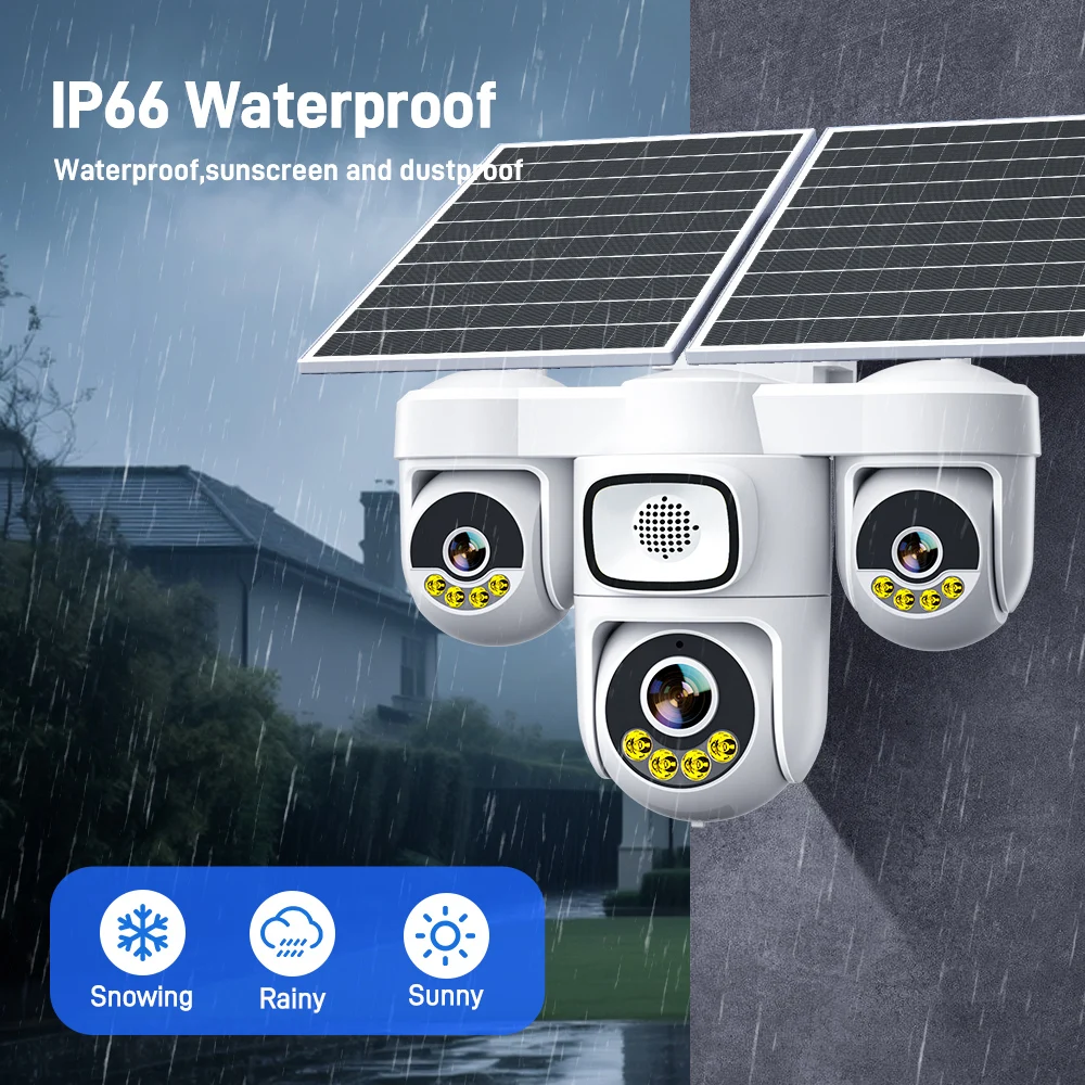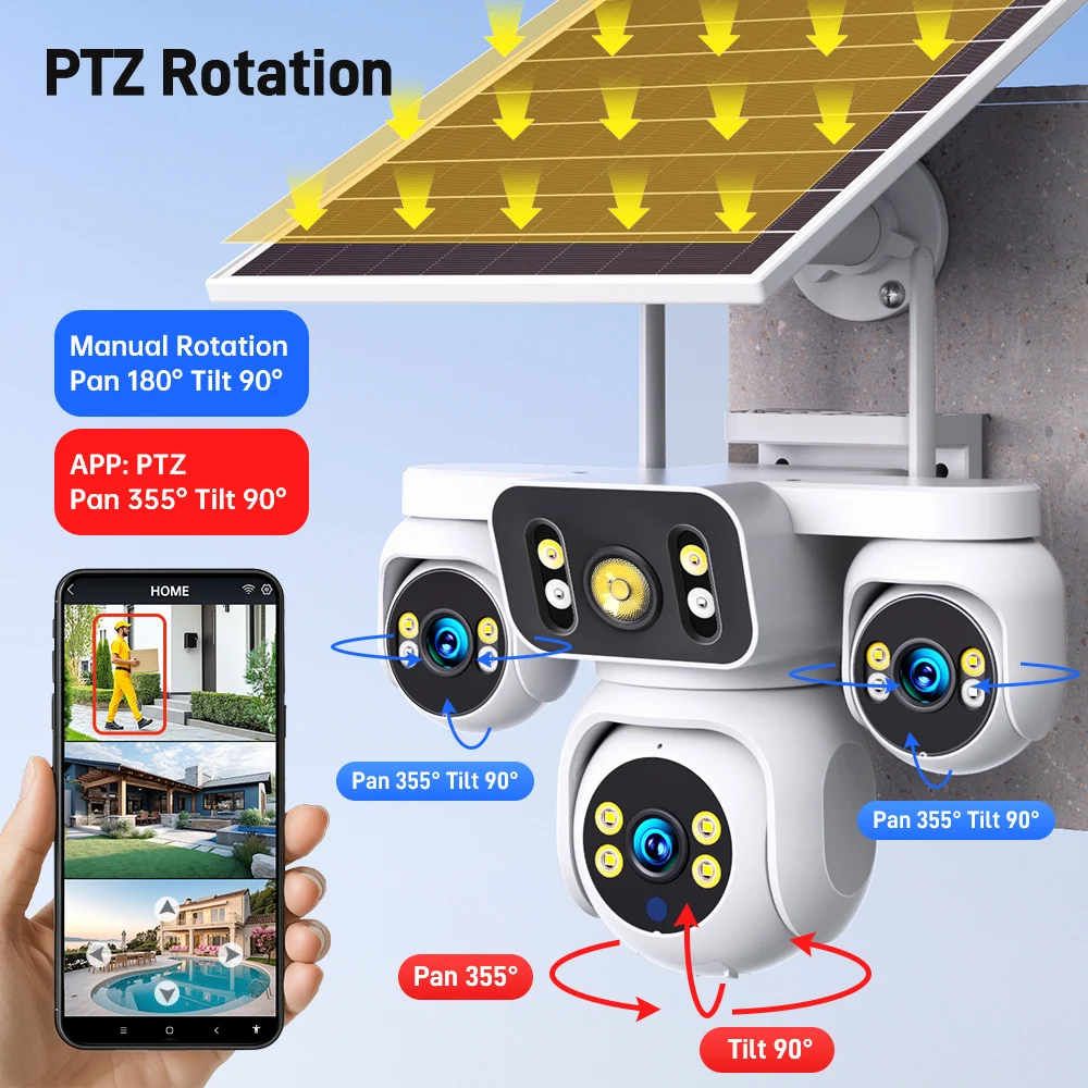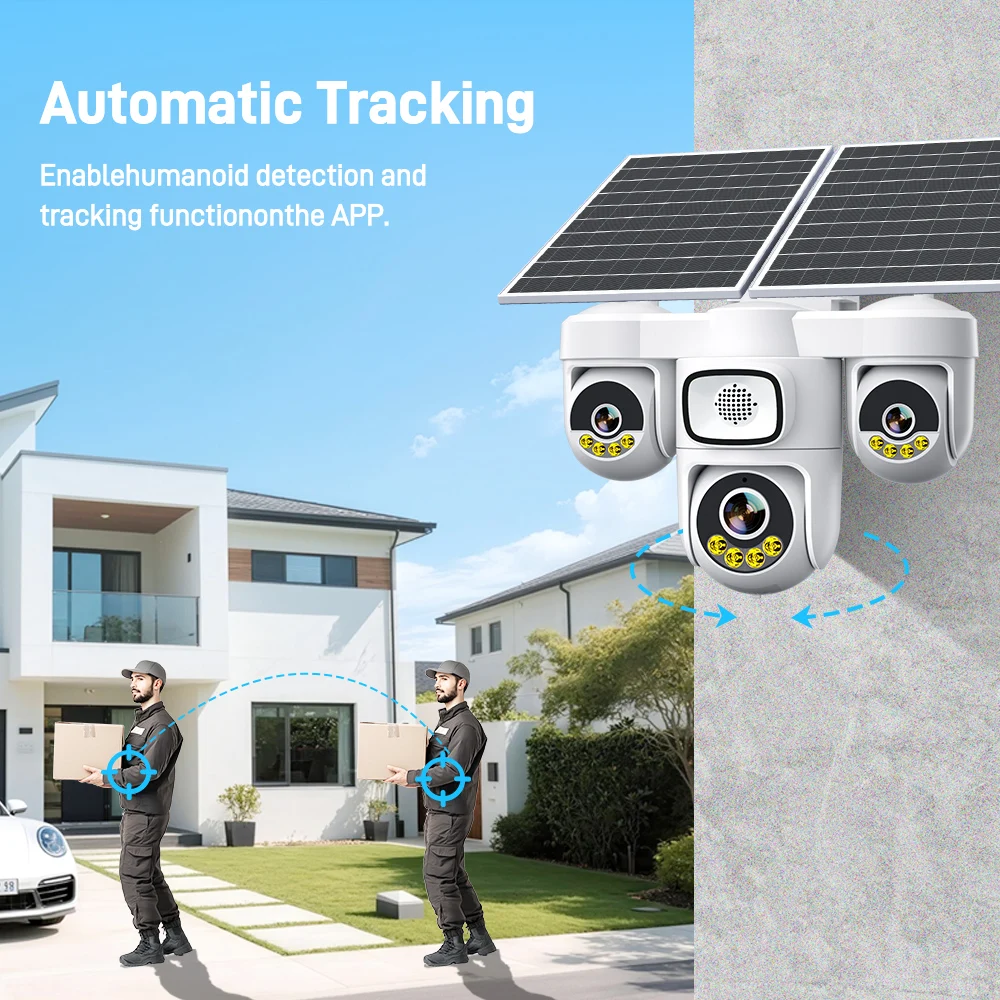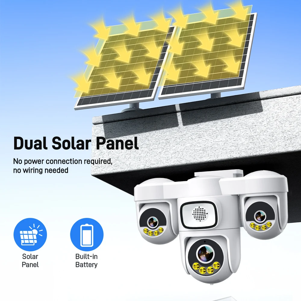 Solar Camera Triple Lens 16X Zoom Camera Outdoor Triple Screen Auto Tracking Smart Home Wireless CCTV Cam Waterproof