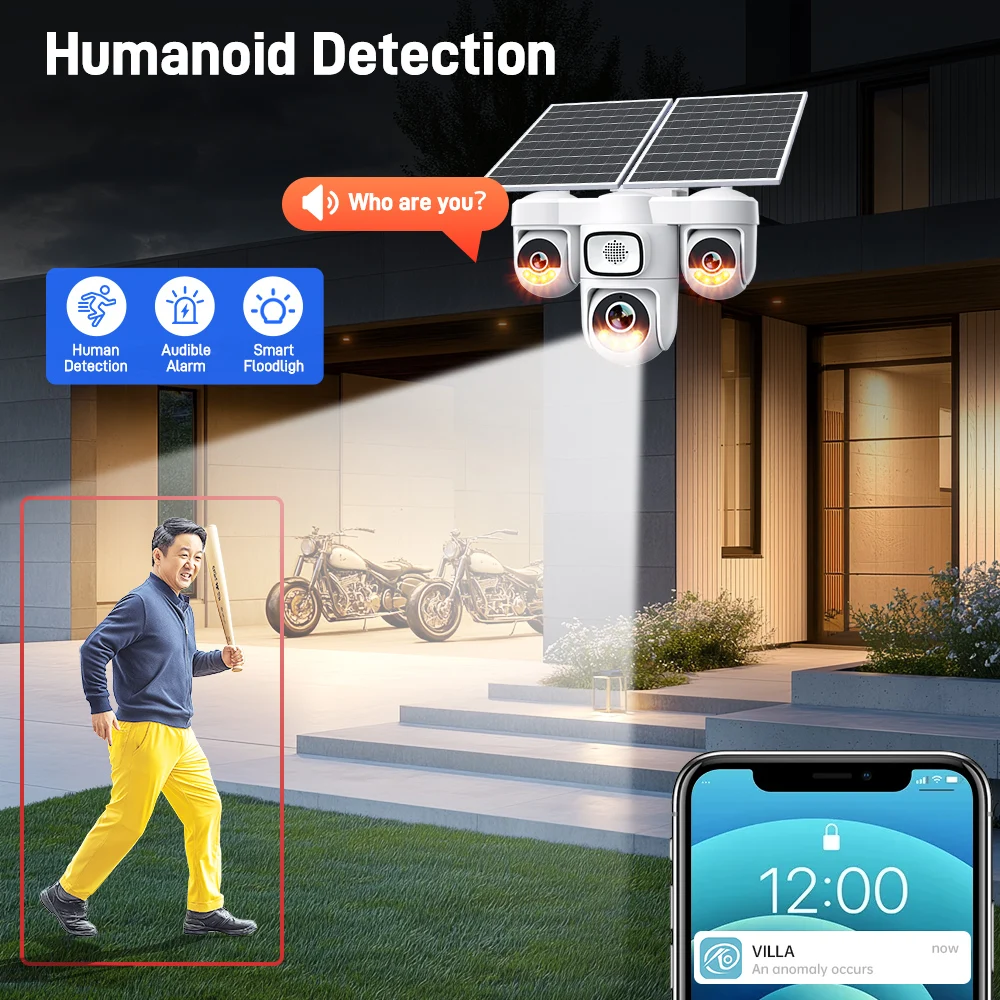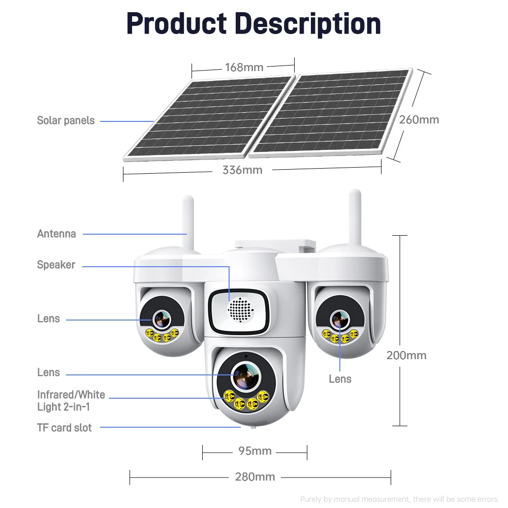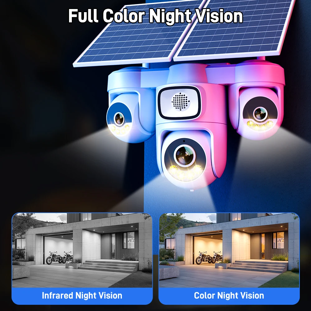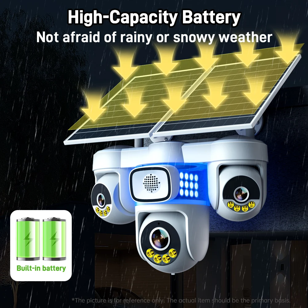 Solar Camera Triple Lens 16X Zoom Camera Outdoor Triple Screen Auto Tracking Smart Home Wireless CCTV Cam Waterproof