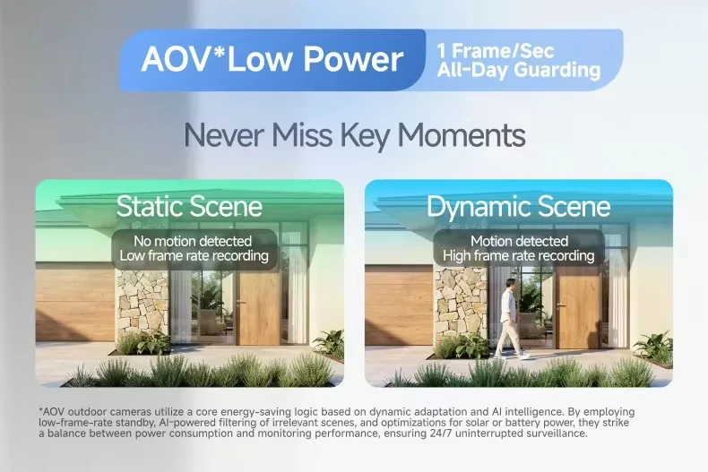 *AI-powered adaptive power management: Dynamically switches between low-frame-rate standby and high-frame-rate recording based on motion detection.