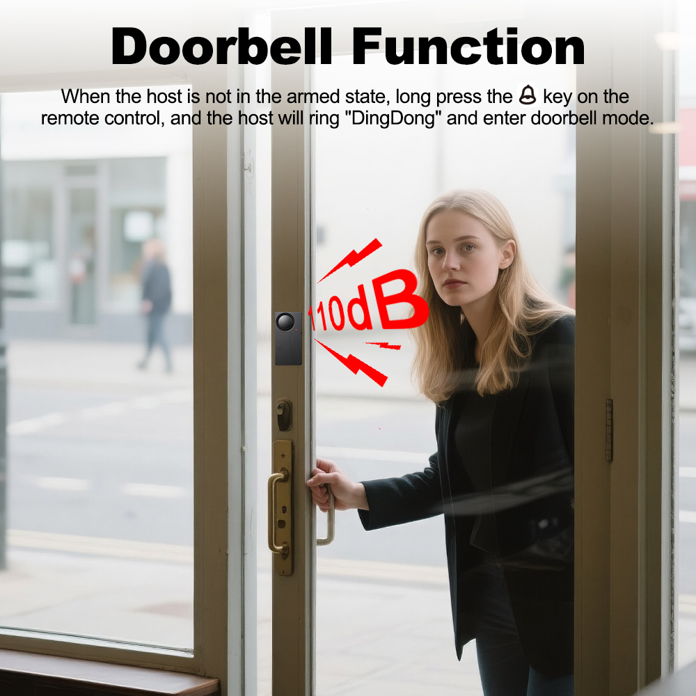 ● Not only a safety/antitheft alarm, but also a Doorbell, in doorbell mode, the vibration alarmdetects vibration the host sound”Dingdong”