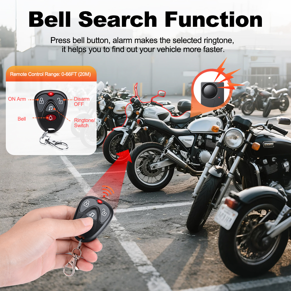 Arm key: Press it, once triggered, alarm will bell 110db voice.