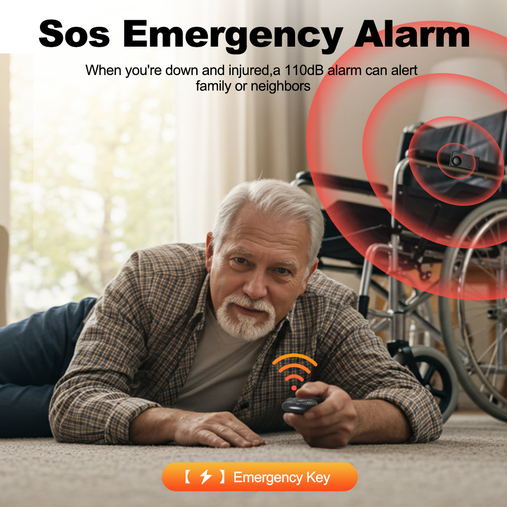 SOS key: Press it, the alarm will bell 110db voice though alarm is not triggered. This function will be very helpful when someone is in danger or need emergent help.