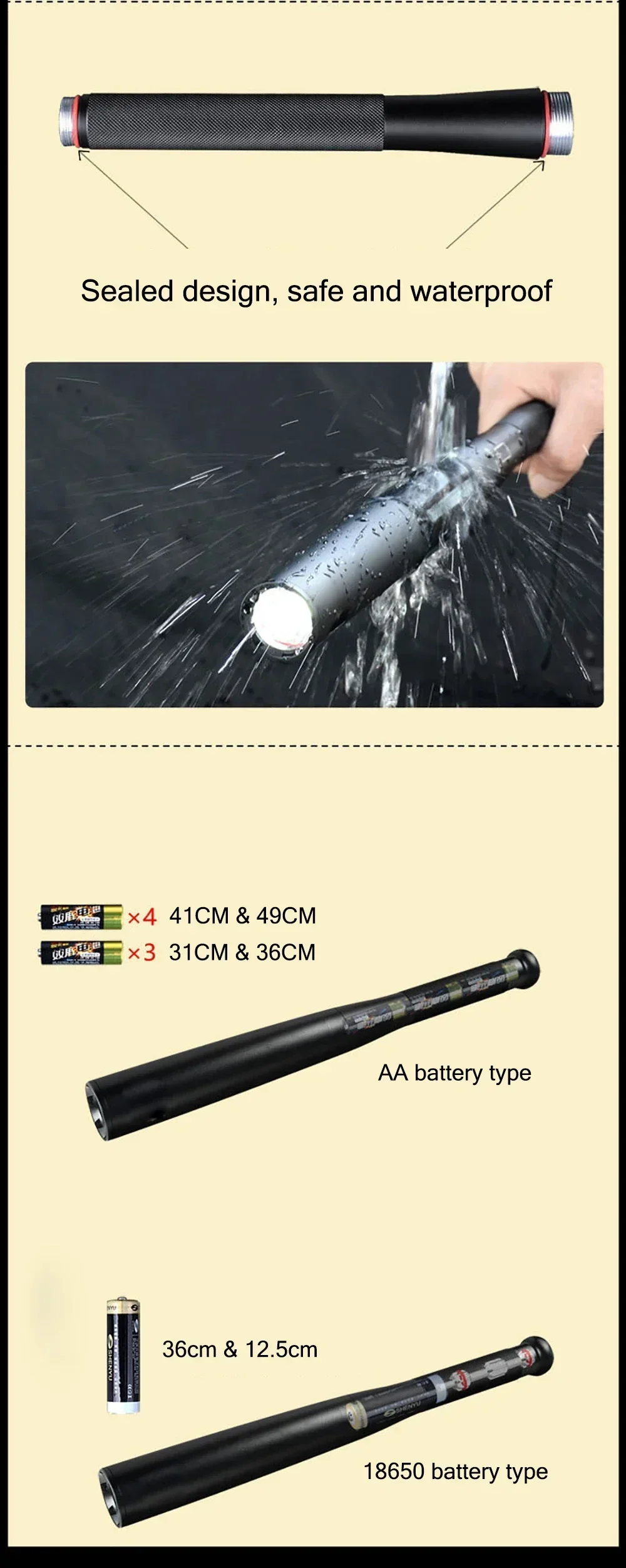 Baseball Bat LED Flashlight Waterproof Super Bright Baton Aluminium Alloy Torch For Emergency Self Defense Anti Riot Equipment/ Baseball Bat LED Flashlight Waterproof Super Bright Baton Aluminium Alloy Torch For Emergency Self Defense Anti Riot Equipment
