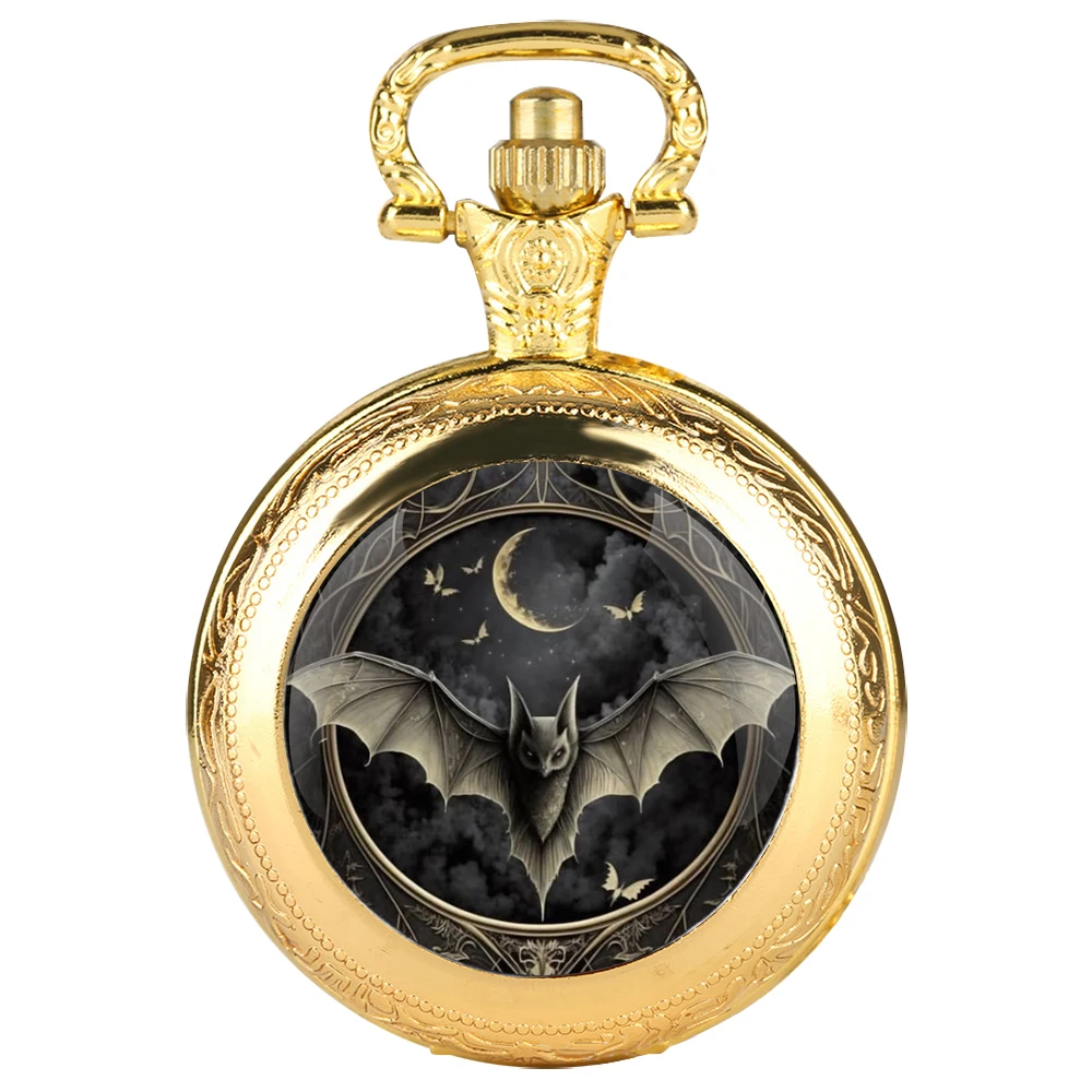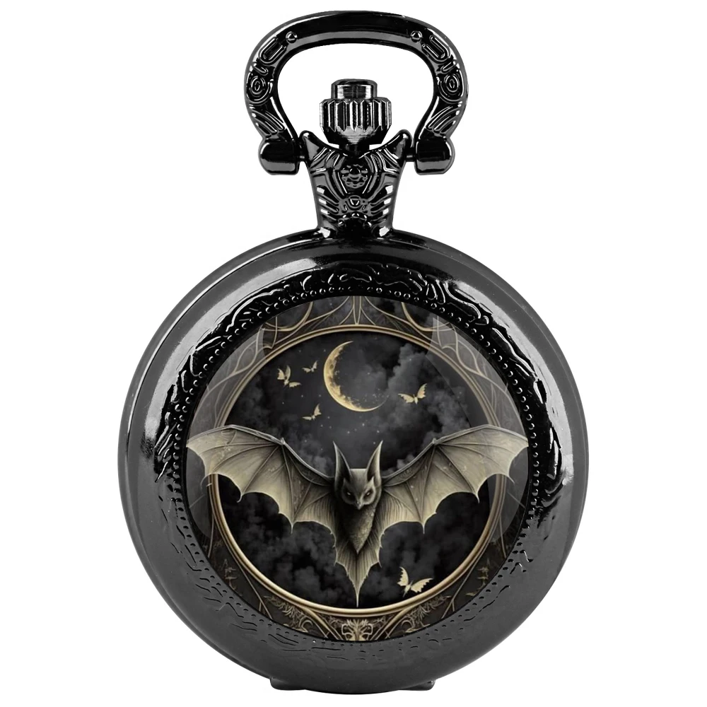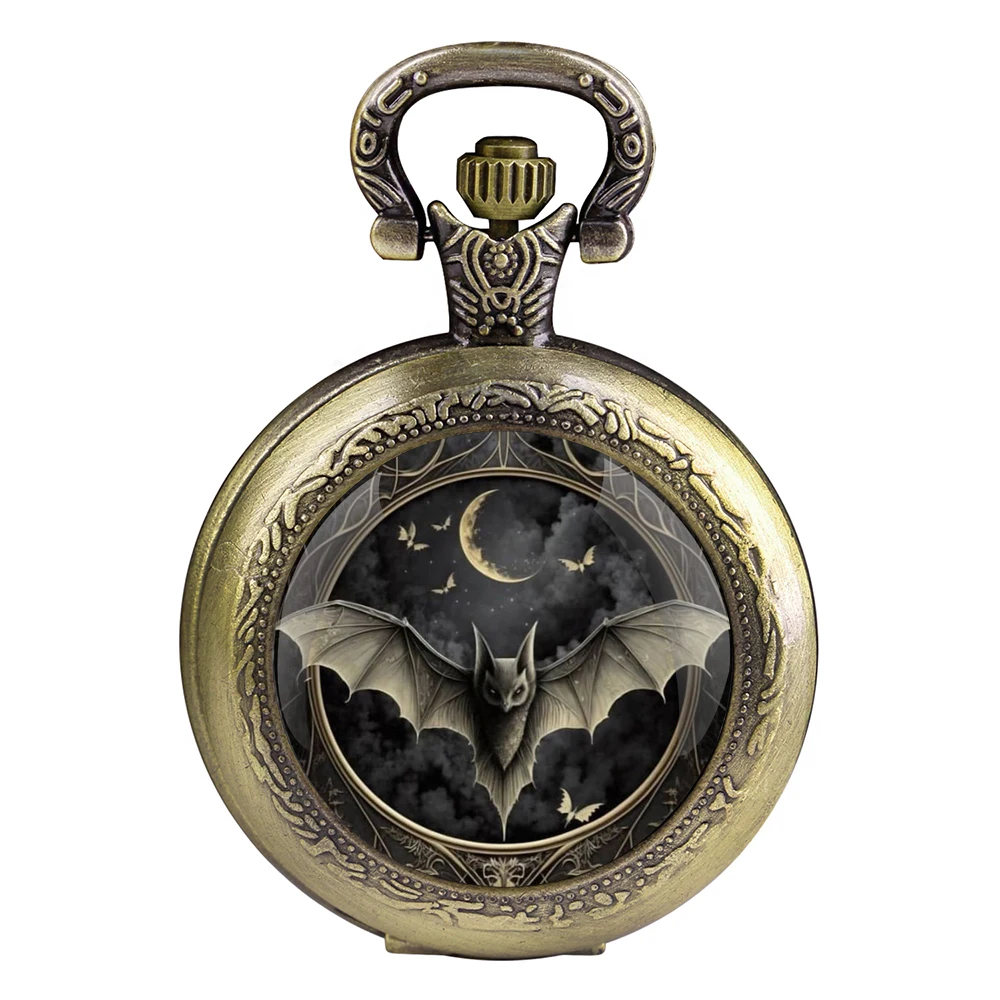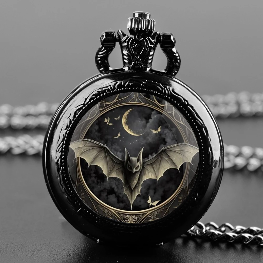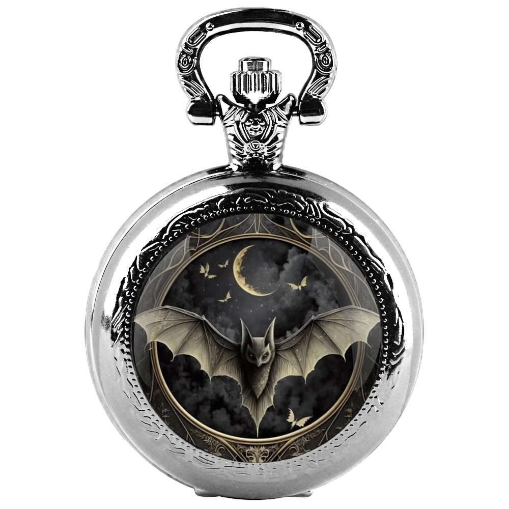 Bat Design Glass Dome Quartz Pocket Watch With Durable Chain Arabic Numeral Dial For Men And Women Creative Gifts