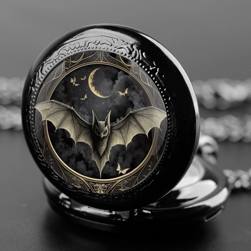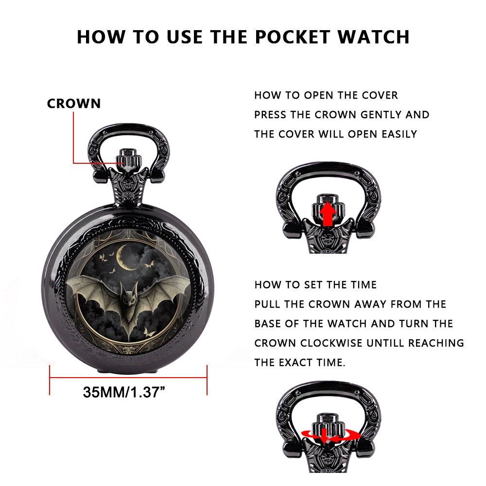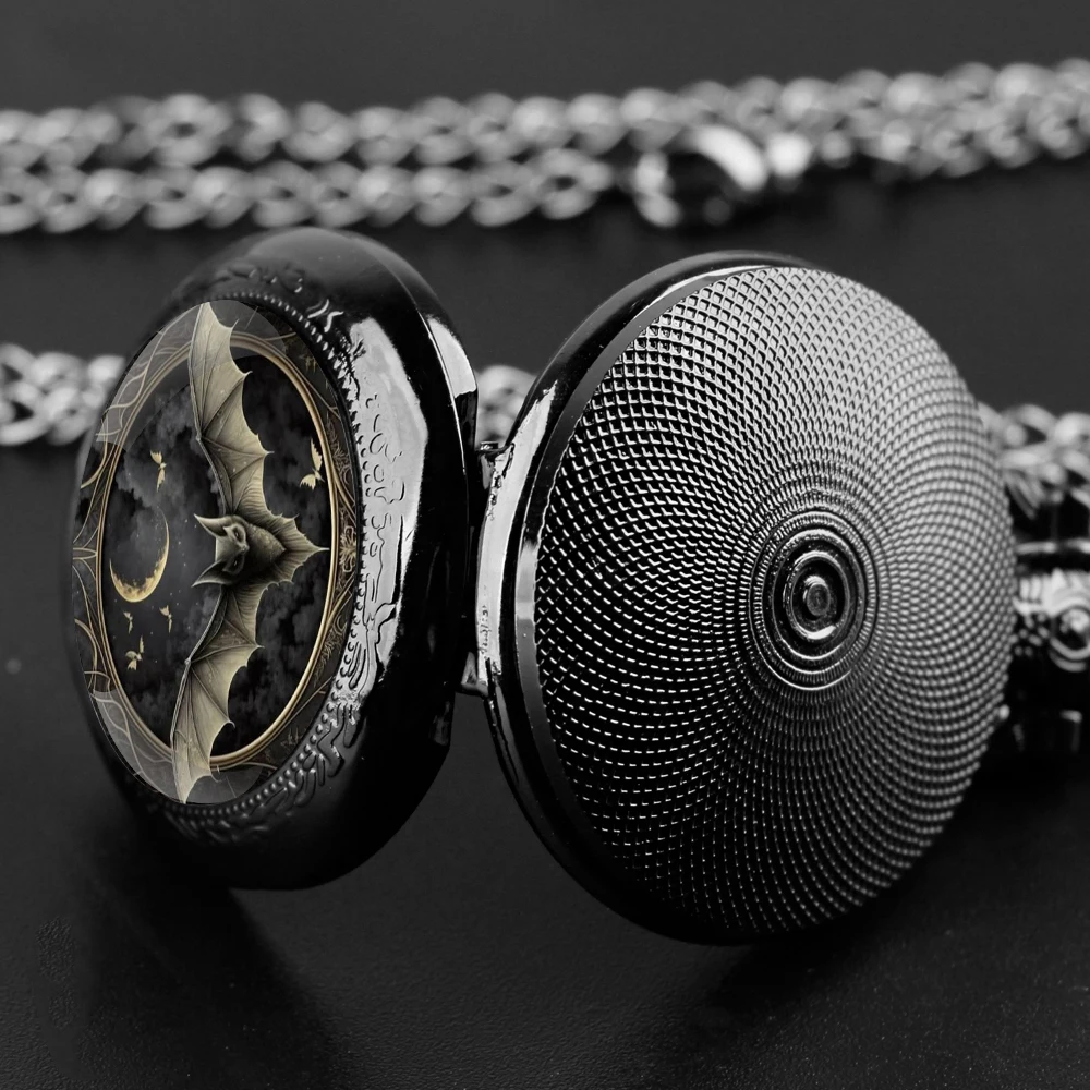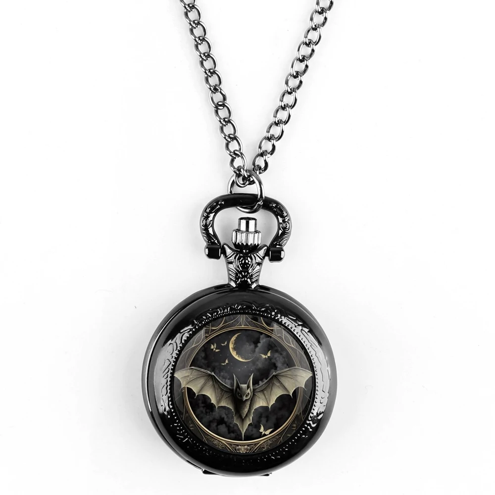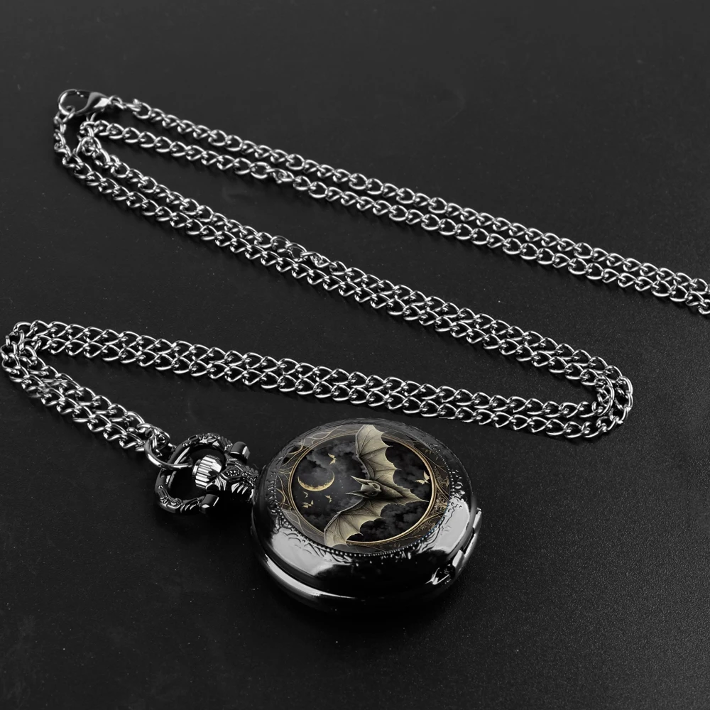 Bat Design Glass Dome Quartz Pocket Watch With Durable Chain Arabic Numeral Dial For Men And Women Creative Gifts