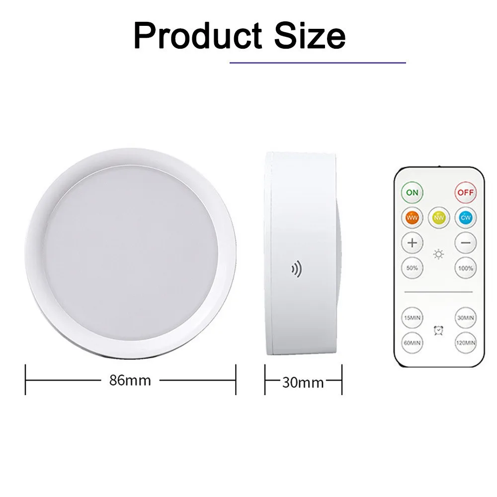Battery Powered Night Light Smart Remote Control Cabinet Light Dimmable Warm/White Light Kitchen Light Closet Aisle Stairs Light
