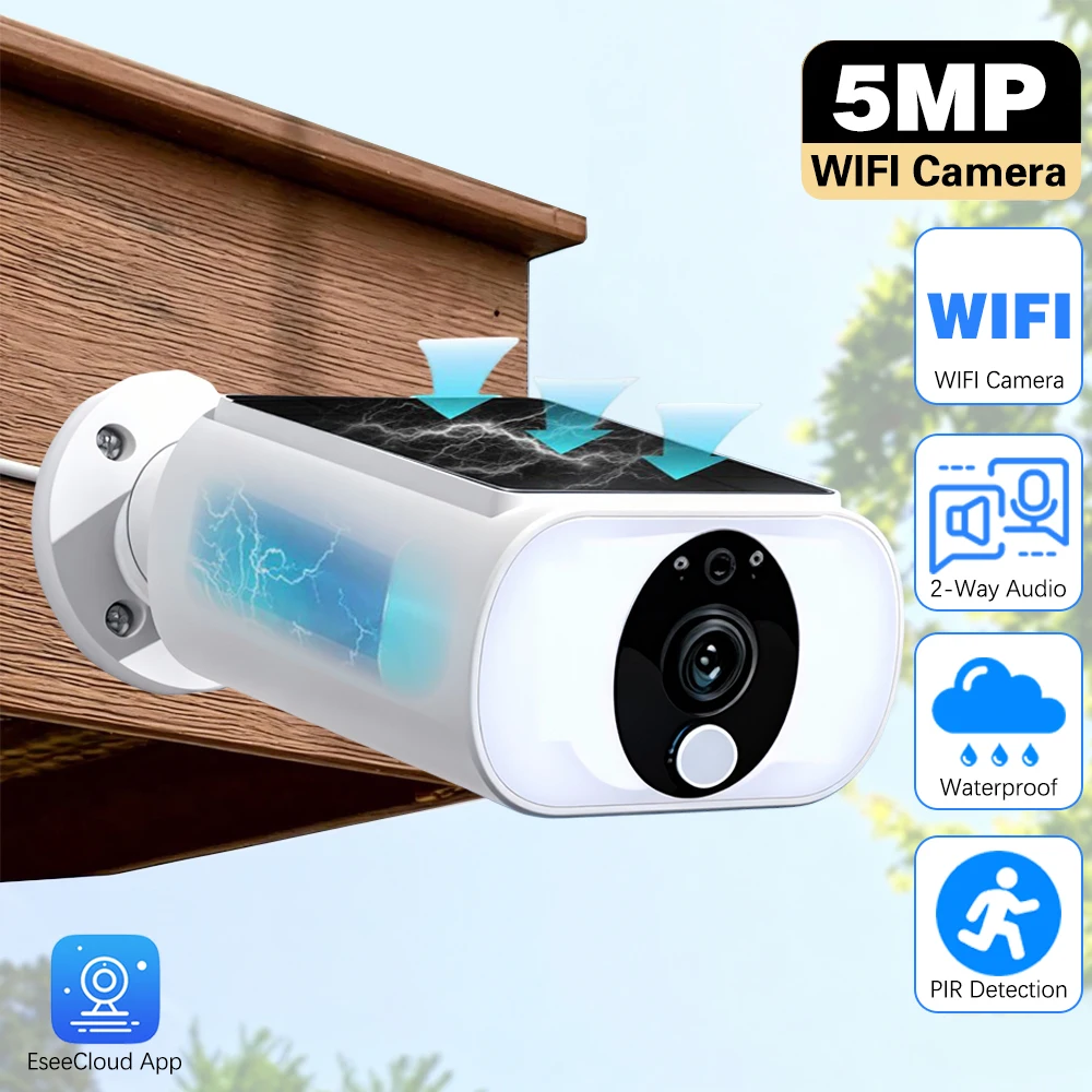 WIFI Solar IP Camera 5MP Solar Panel Battery Powered Camera Security Camera Camera Solar Outdoor PIR Motion Detection EseeCloud
