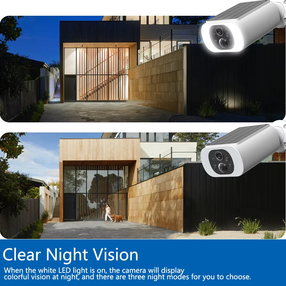 When the white LED light is on, the camera will display colorful vision at night, and there are three night modes for you to choose.