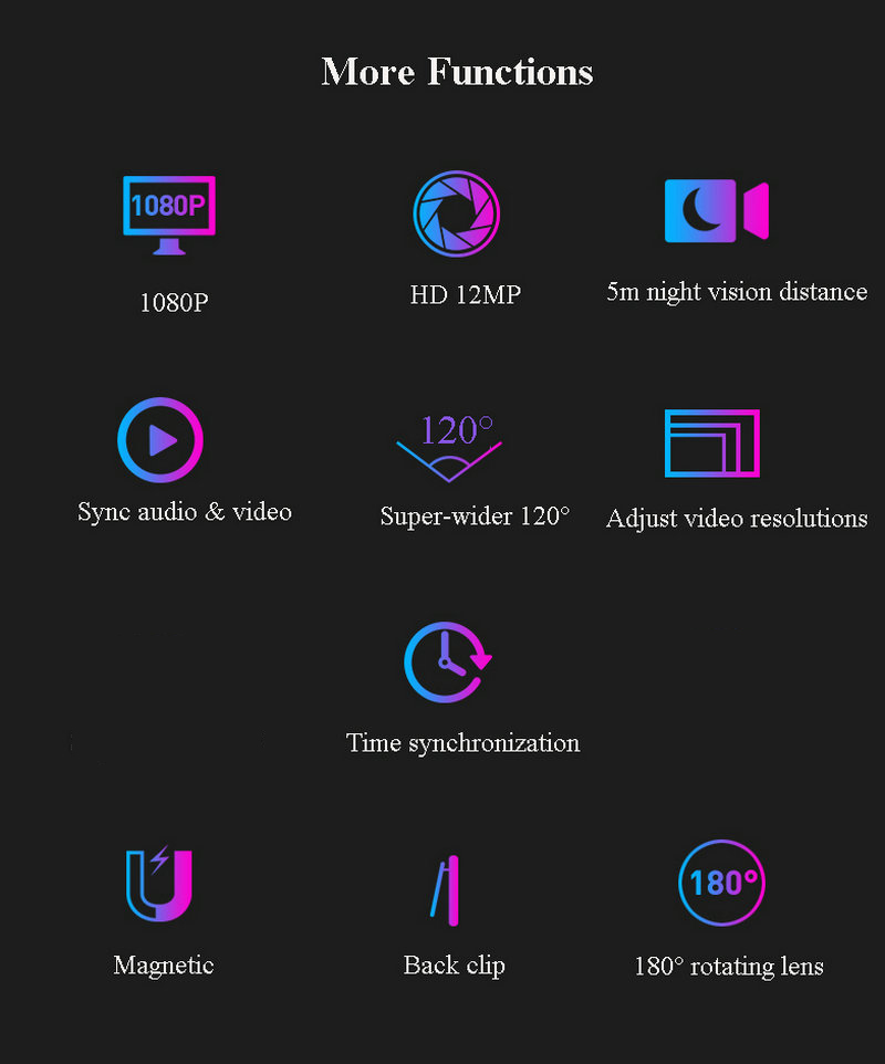 9. 180-degree rotating camera heads and Super wider angle of 120 degrees