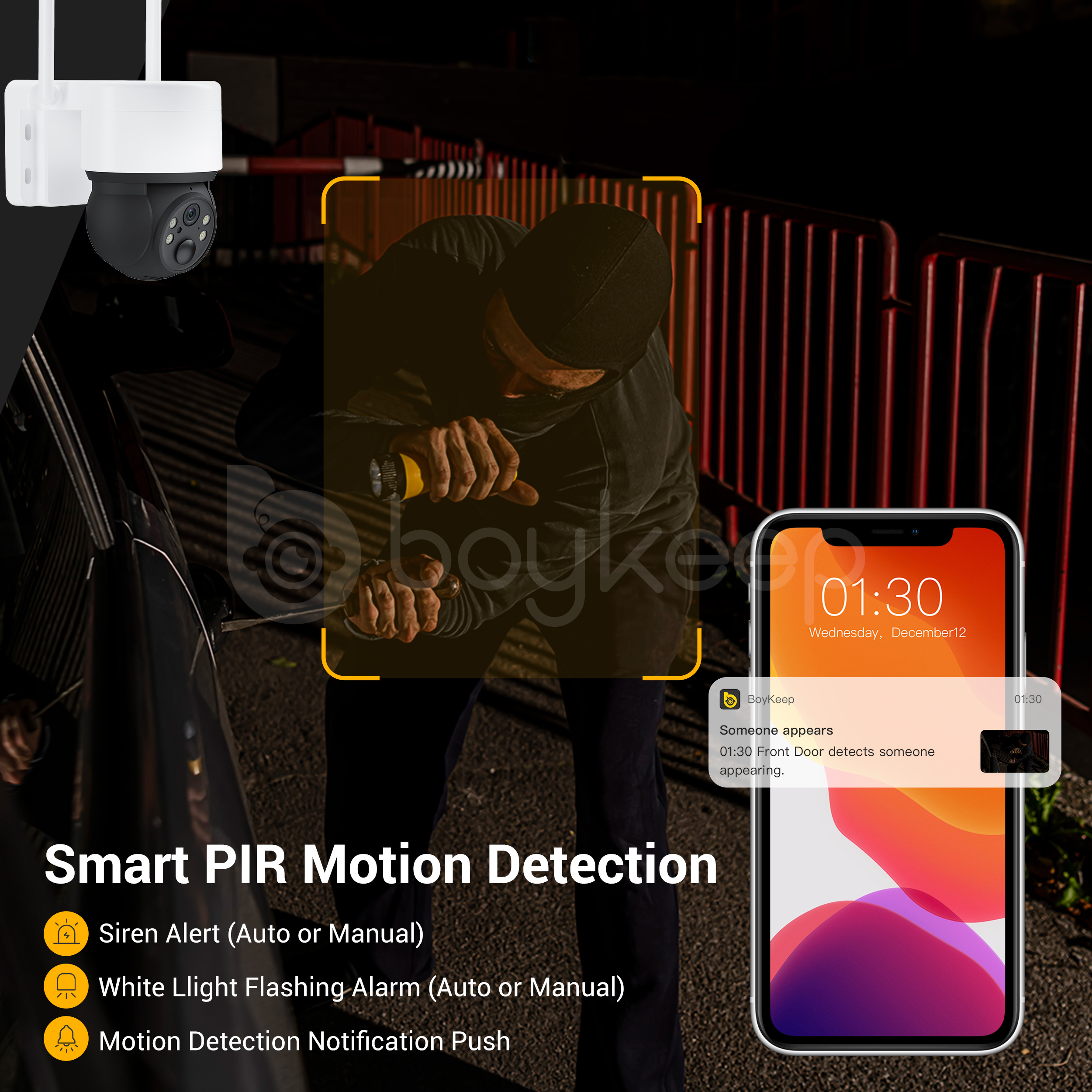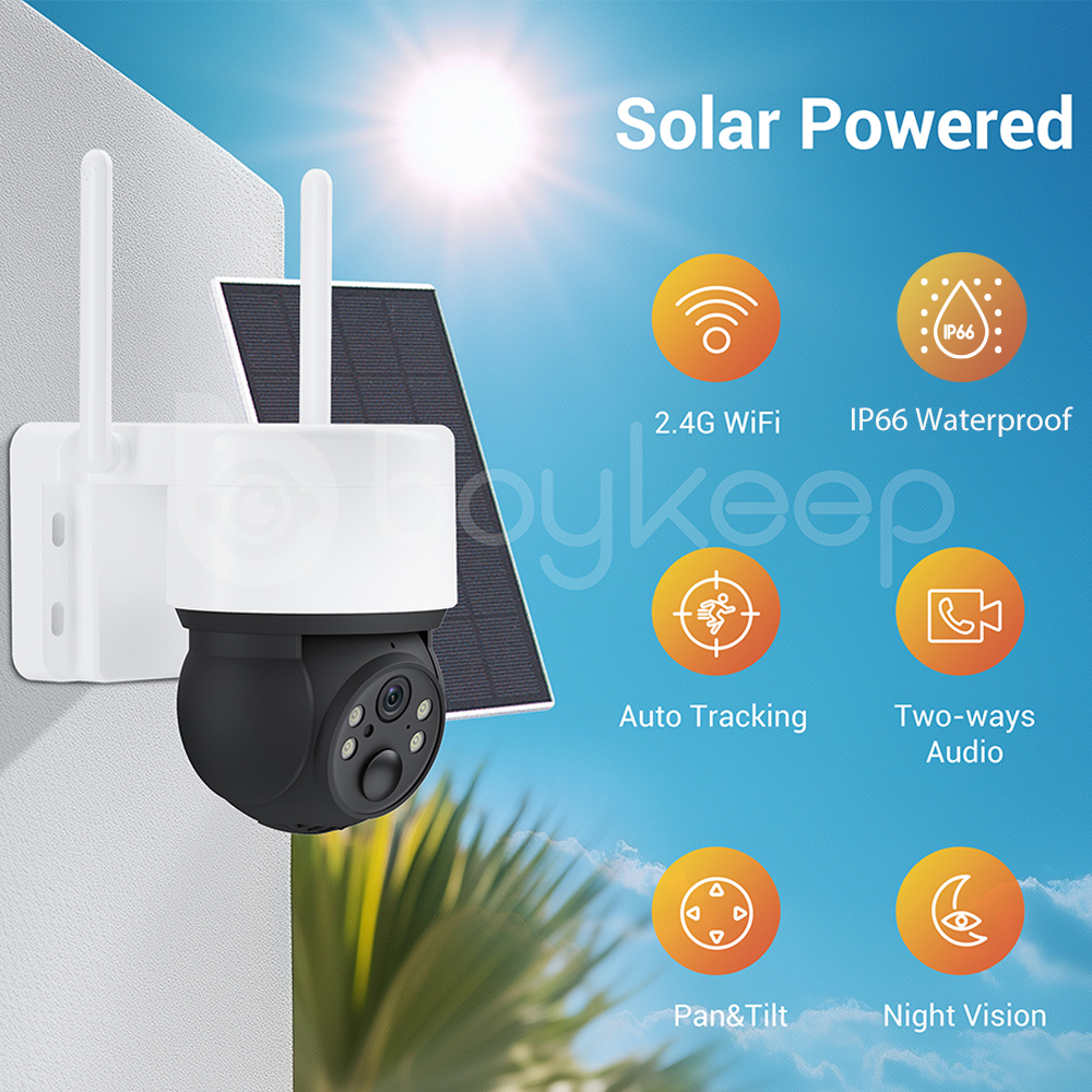 Boykeep Smart Security Camera 3MP HD 360° Rotating Outdoor Bullet Camera Low Power Solar Powered Dual Light Night Vision IP66