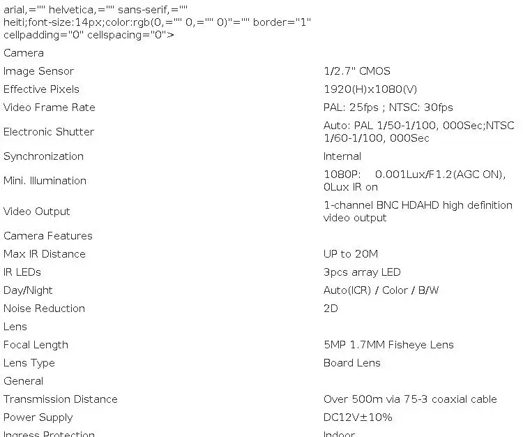 * AHD 2MP / 5MP optional (Please note: you must use a compatible DVR AHD 2MP / 5MP)