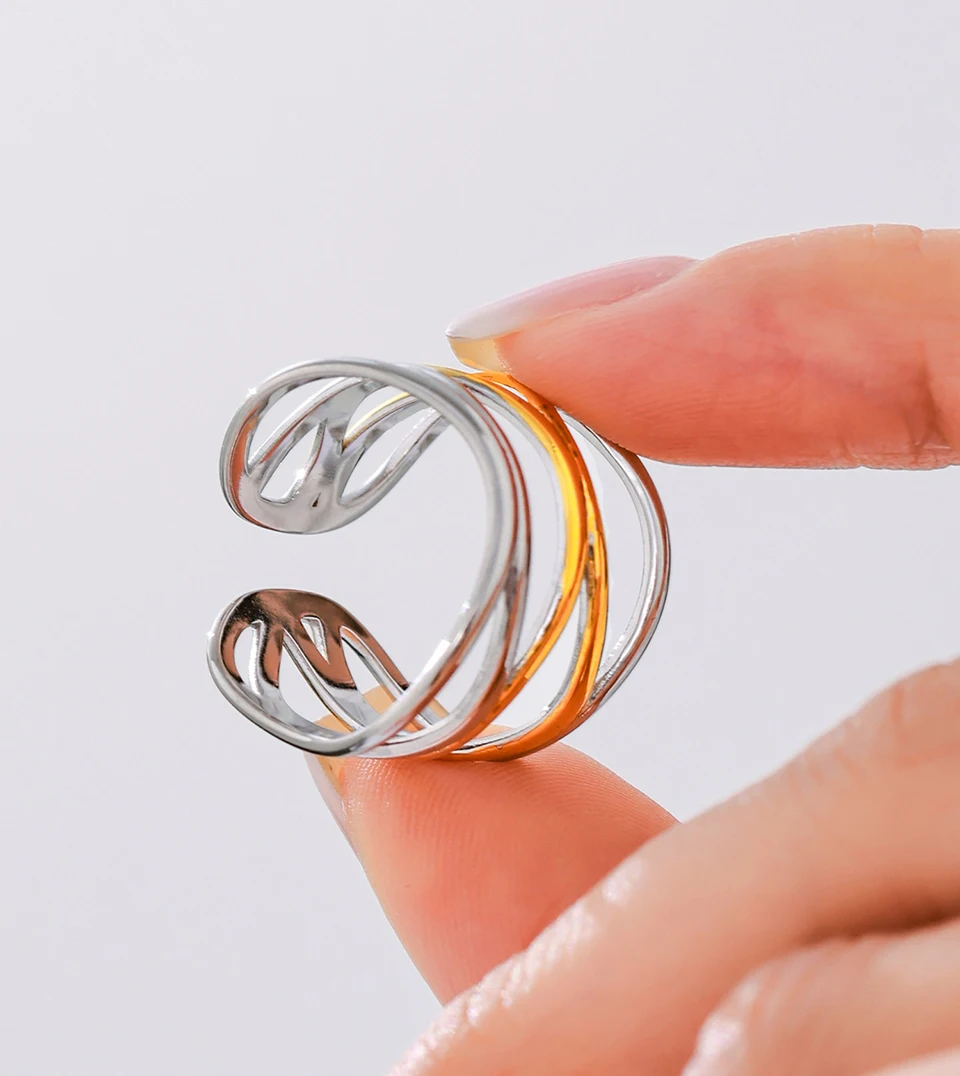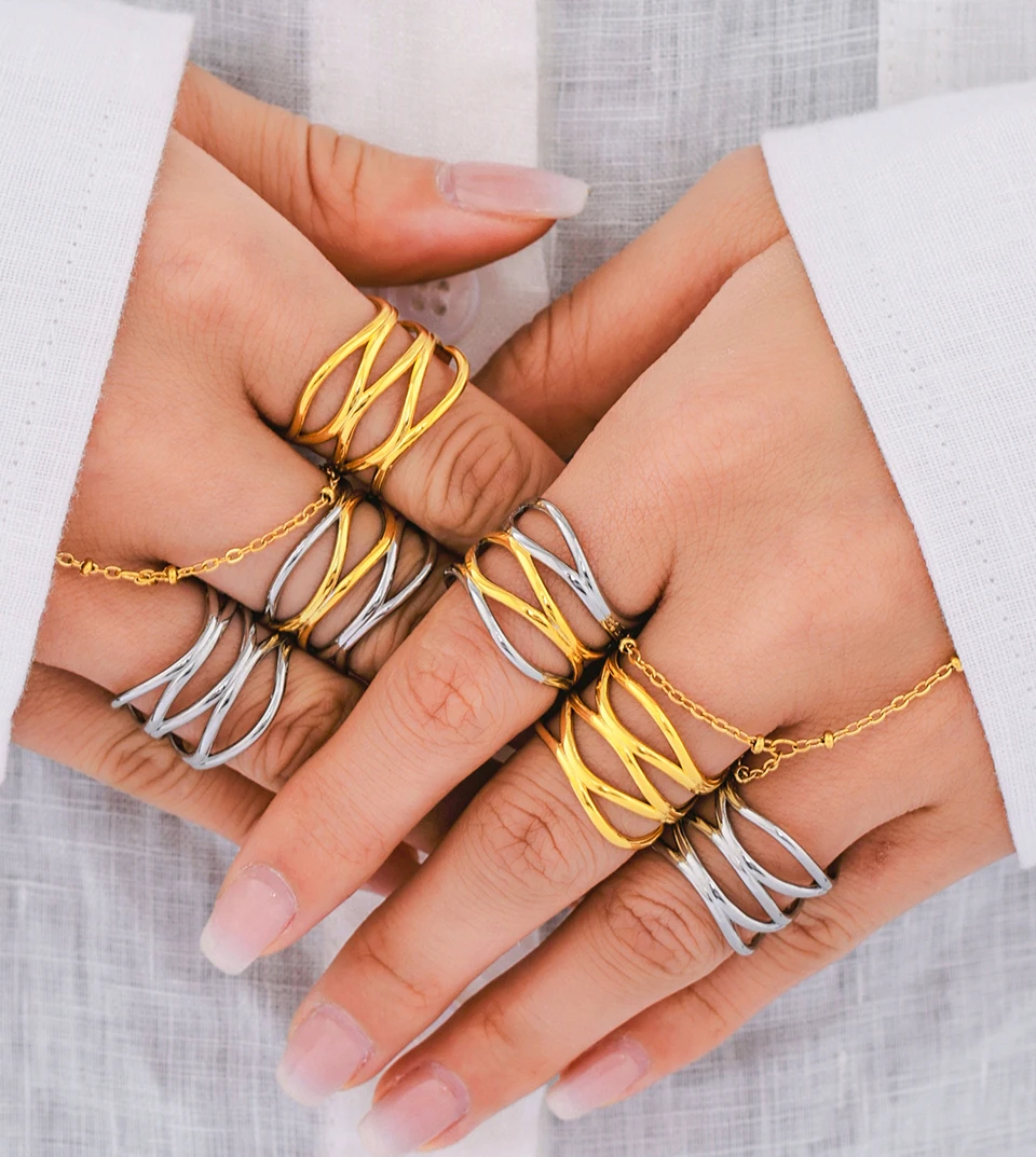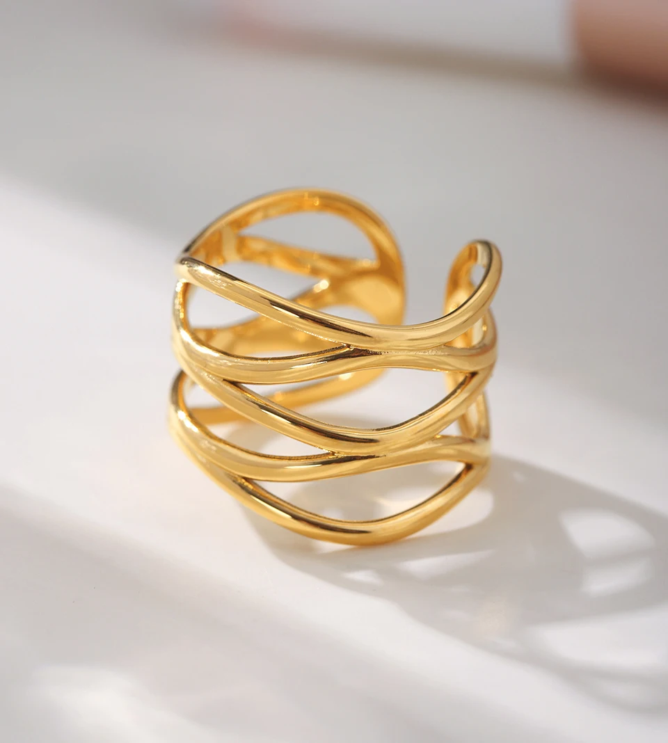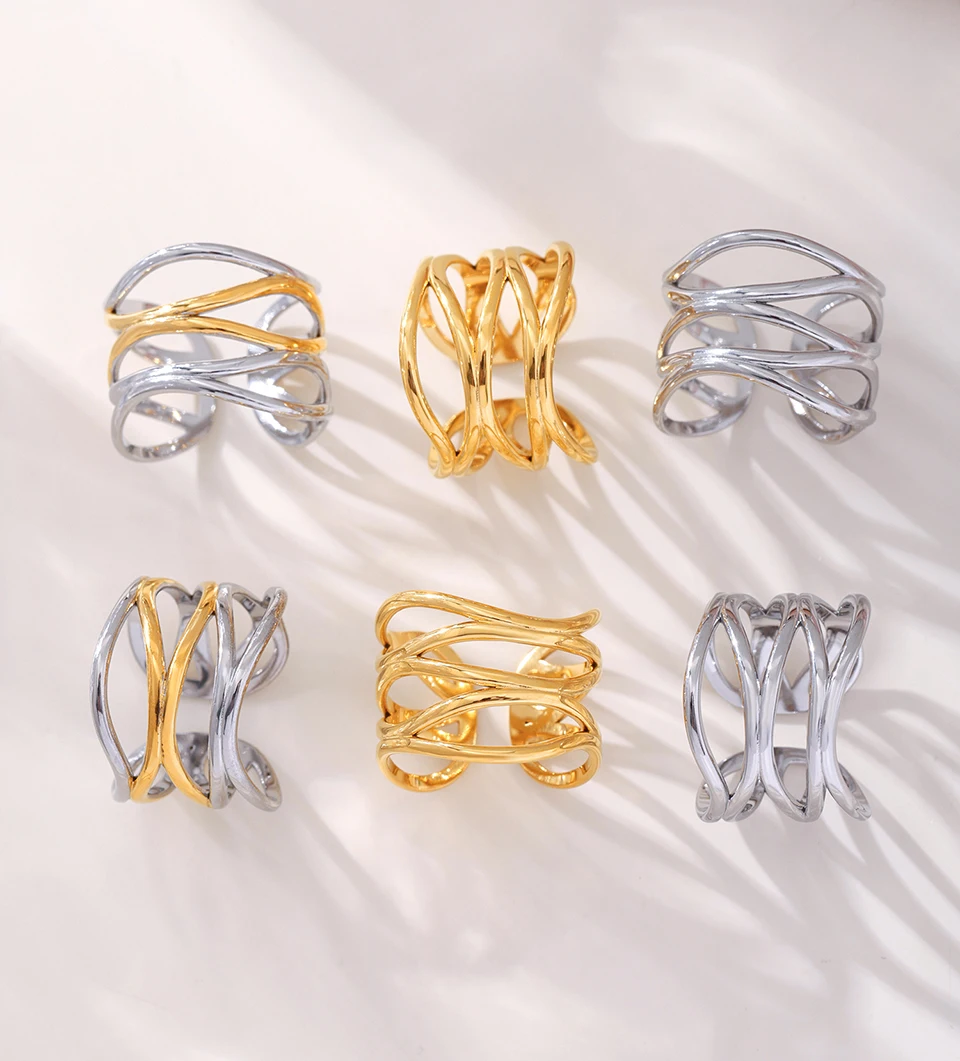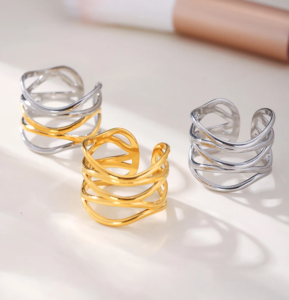 Chic Stainless Steel Rings For Women 18k Gold Plated Waterproof Strips Design Open Ring Couple Jewelry Gift