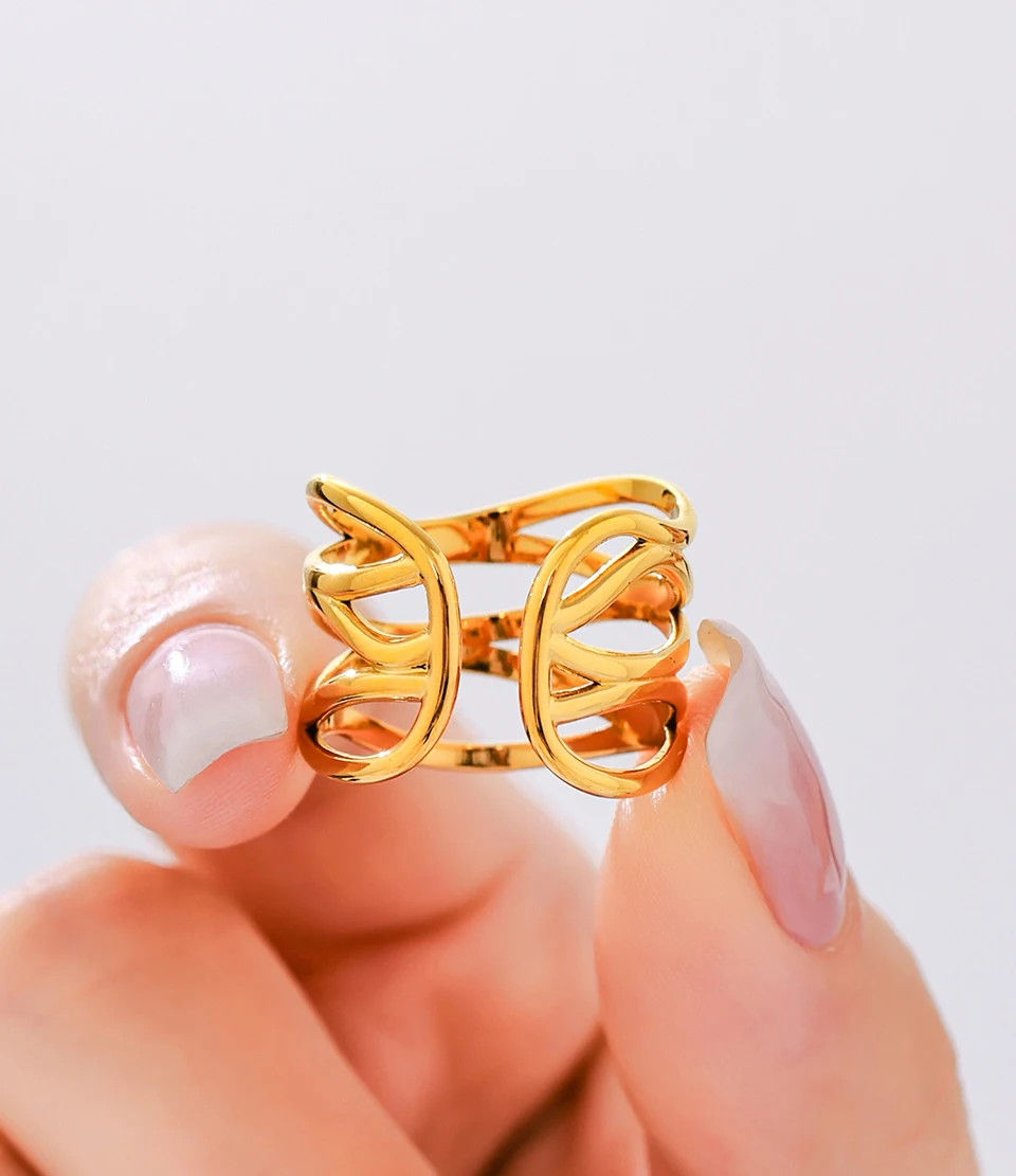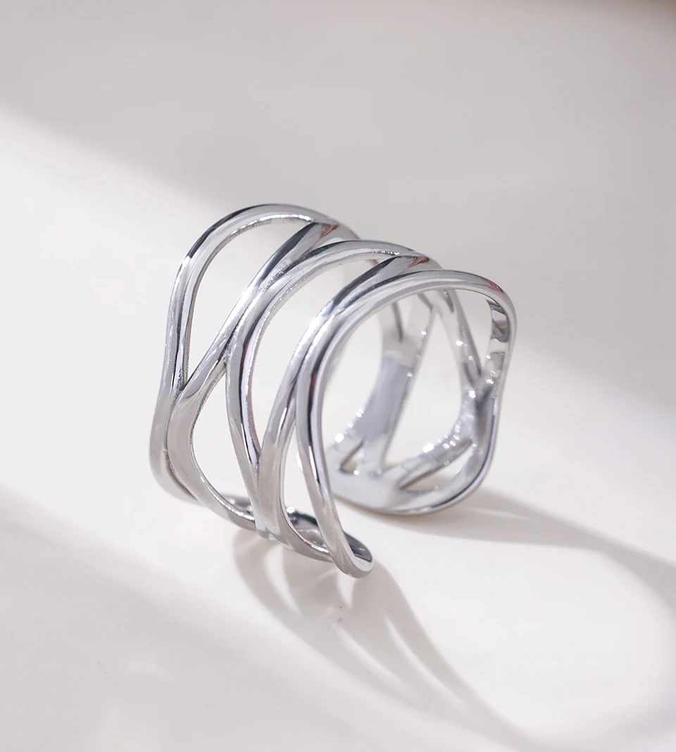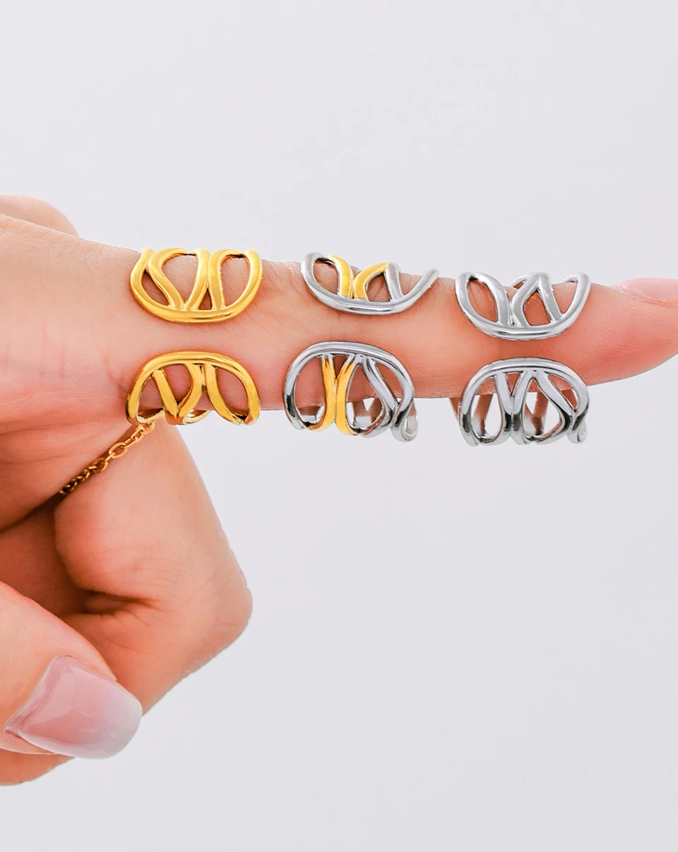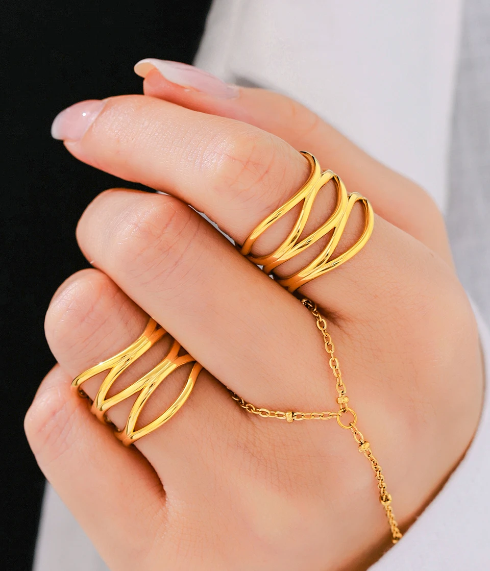Chic Stainless Steel Rings For Women 18k Gold Plated Waterproof Strips Design Open Ring Couple Jewelry Gift
