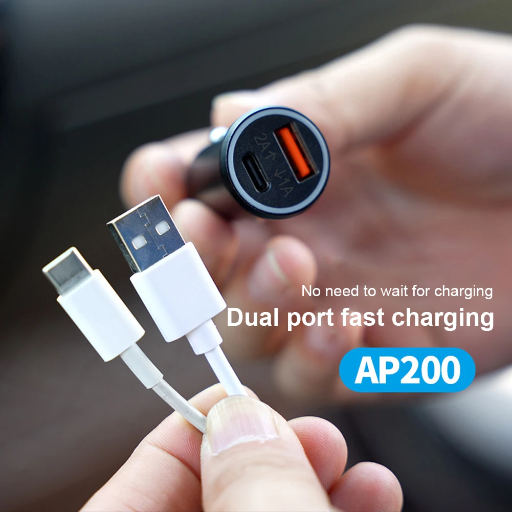 Mini Car Charger GPS Locator with USB & Type-C Charging Port Cigarette Lighter Adapter Anti-Theft Compatible with Apple System Find My App Specification: