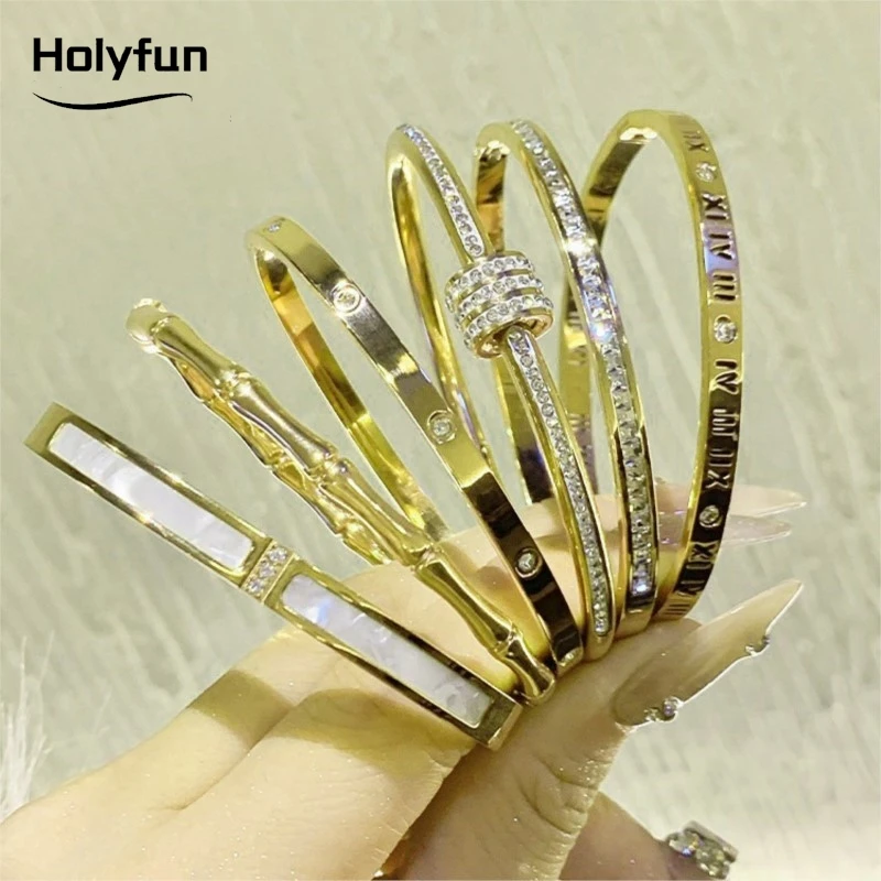 Classic Bracelet Design Gold Color Waterproof Stainless Steel Luxury Brand Sparkling Zircon Bangles for Women Gift Jewelry