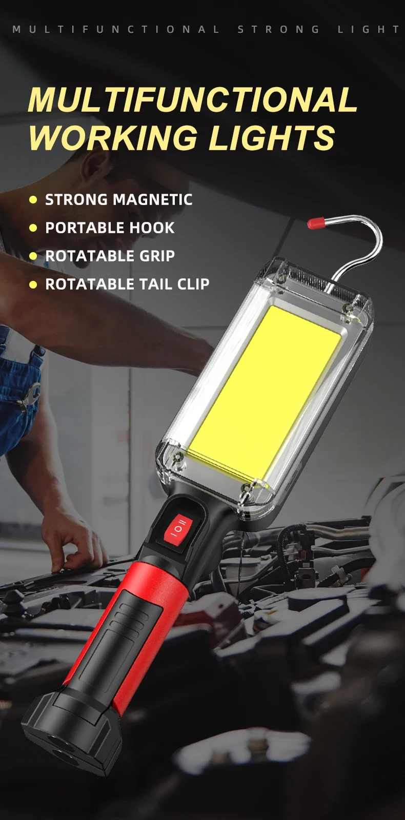 led work light cob worklight rechargeable lamp led portable light magnetic hook clip waterproof glare flashlight camping