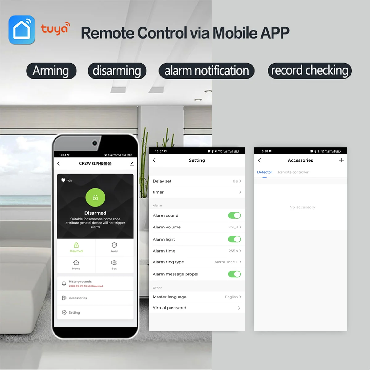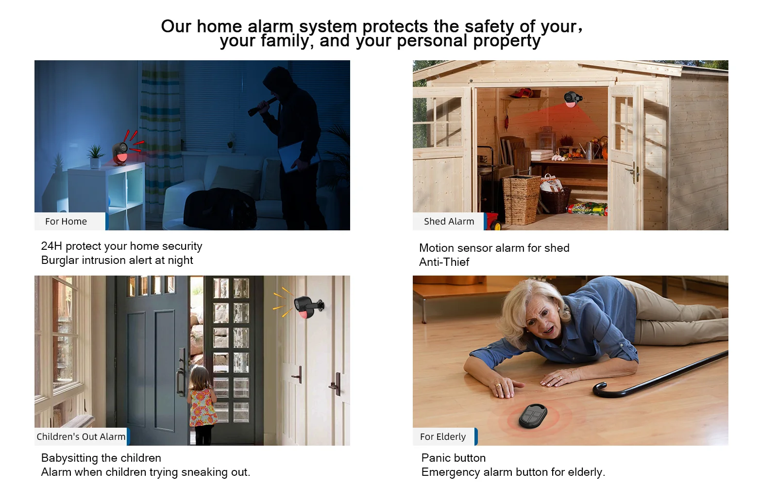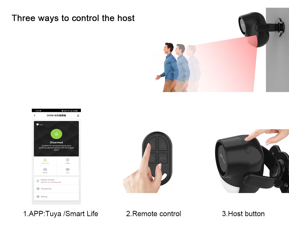 APP Instant Notification: When your alarm host or sensor is triggered, your phone will receive instant notification. You can set alarm modes, customize accessory names, and monitor all accessories through Tuya or the Smart Life app. (Only supports 2.4GHz WiFi networks.)