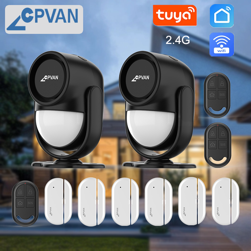 CPVAN Tuya Wifi CP2W Home Alarm System 125dB house Burglar security Alarm motion Sensor Detector with 433Mhz door/window sensor
