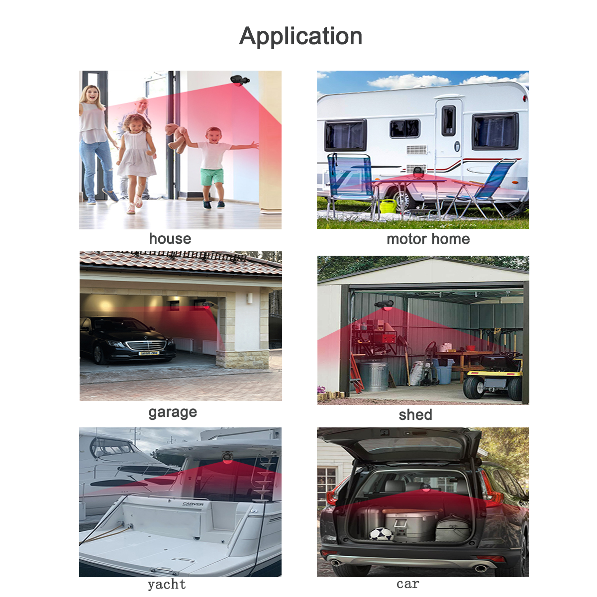 More secure design: communication range up to 328 feet/100 meters (open range), infrared sensor detection range of approximately 16-26 feet/5-8 meters, 125dB alarm or loud ringing mode, and state-of-the-art passive infrared (PIR), which can detect any movement within the detection area, keeping you informed and safe.